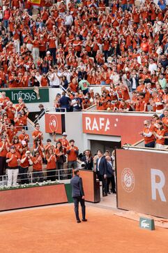 Tribute ceremony for the career of tennis player Rafael Nadal at Roland Garros. Many of the player's friends and famous guests attended.