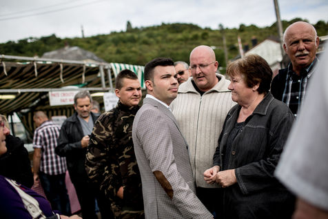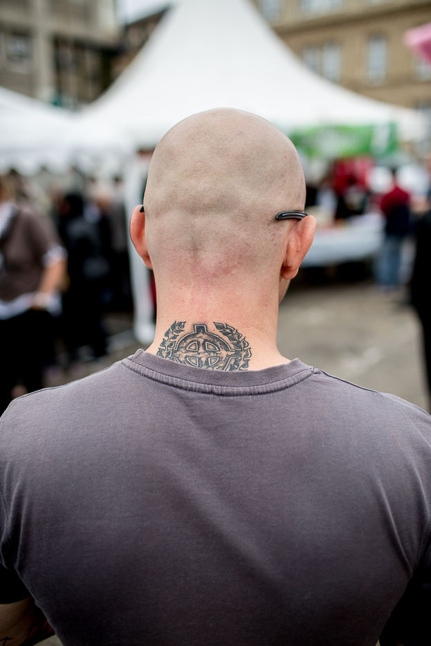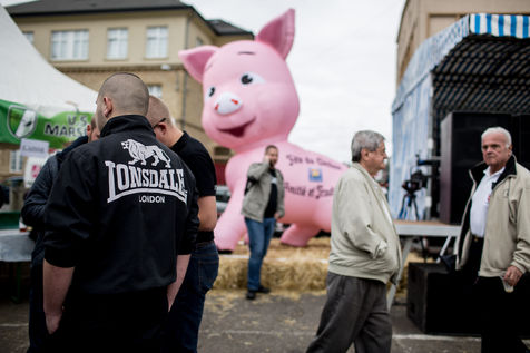 Pour la deuxième année, le maire FN d'Hayange organisait une fête du cochon. Sur la place de la mairie, les hayangois étaient encore plus nombreux que l'année précédente. Mais ils n'étaient pas seuls. De nombreux militants du groupuscule d'extrême-droite Lorraine Nationaliste ou dissidents du Front National avaient également répondu présent.