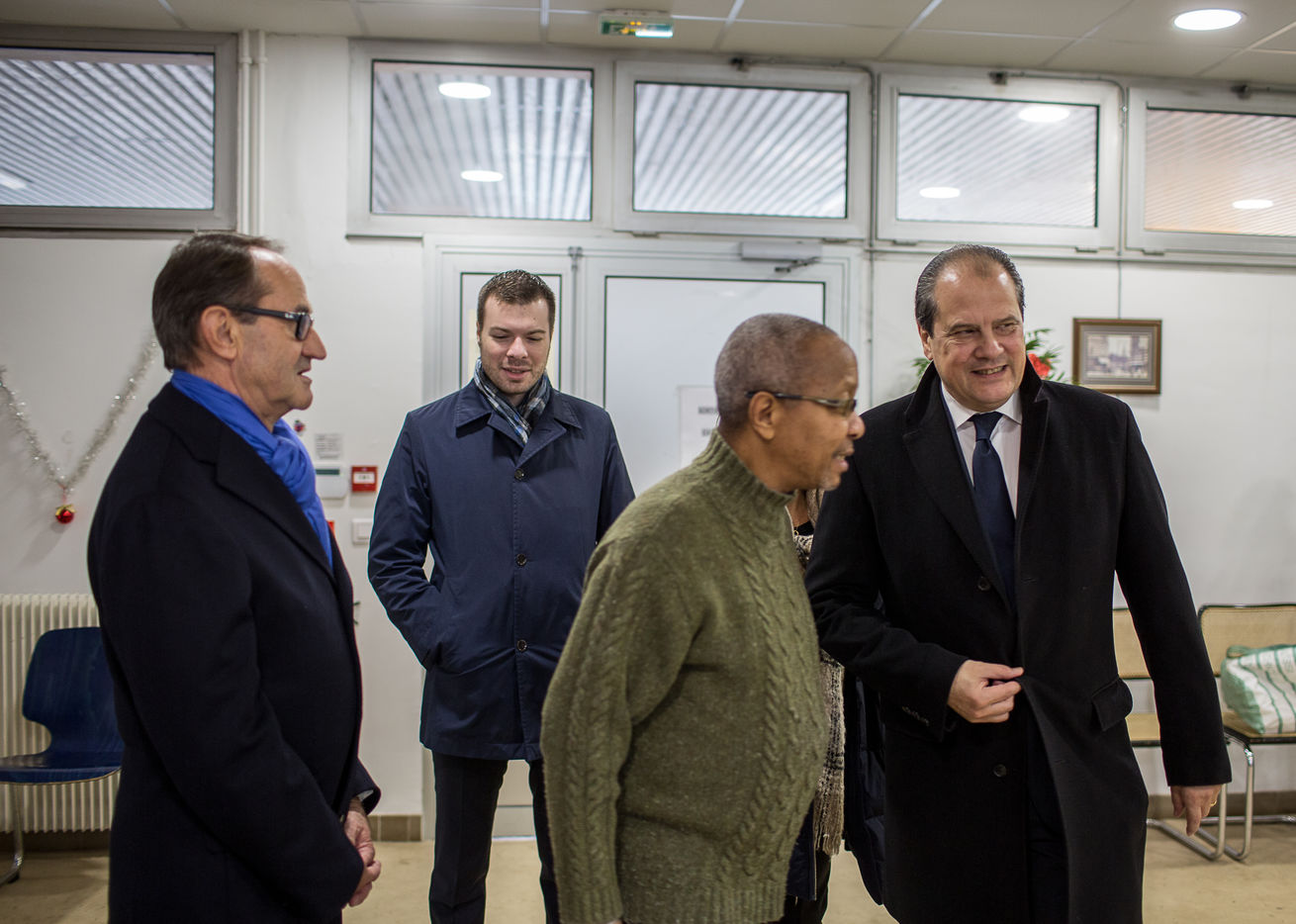 Jean-Christophe Cambadelis visite un Restaurant du coeur à Alfortville dans le Val-de-Marne