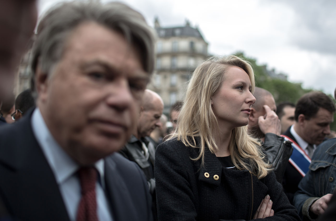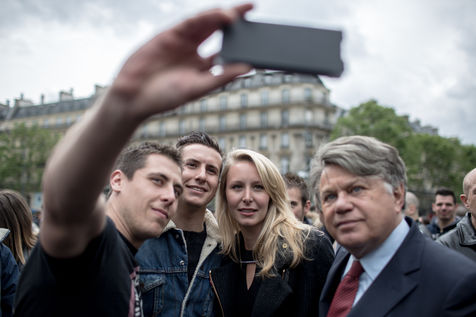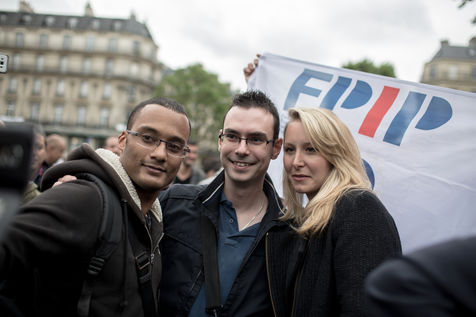 Les policiers ont manifesté, mercredi 18 mai, pour dénoncer la « haine anti-flics » et demander plus de « fermeté » vis-à-vis des « casseurs » ? une première après deux mois d?affrontements parfois violents lors des manifestations contre le projet de loi travail. Le député Les Républicains Eric Ciotti ainsi que les députés Front national et apparenté, respectivement Marion Maréchal-Le Pen et Gilbert Collard, étaient présents sur la place. La nièce de Marine Le Pen s'est prêtée au jeu des selfies avec nombreux policiers grévistes.