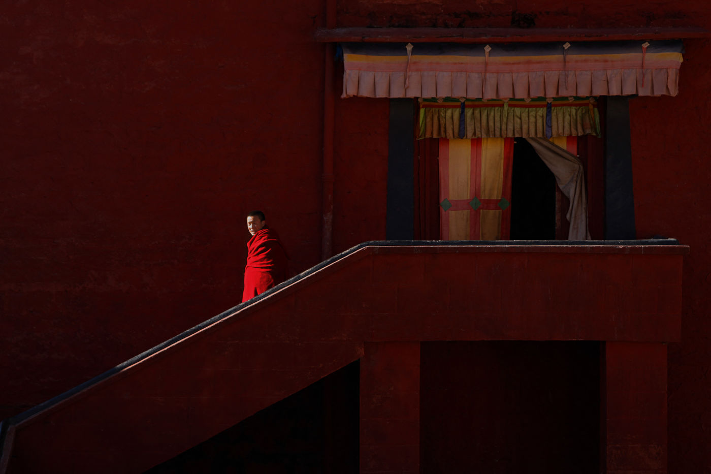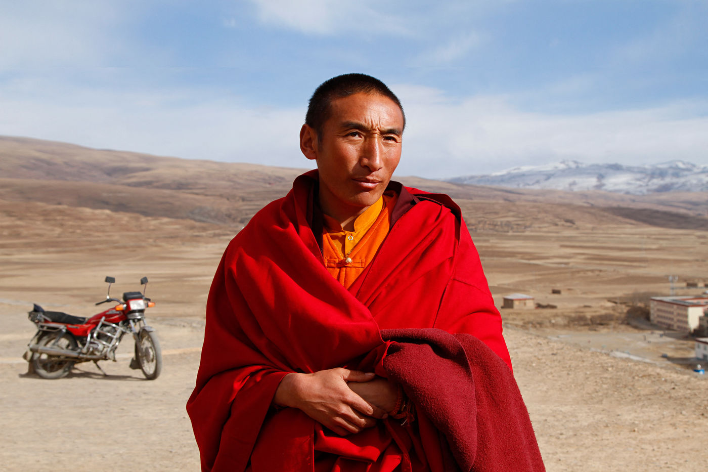 There is a Tibetan region still unknown, the Tibetan Autonomous Prefecture of Garzê. This small Chinese region is a forgotten geographical and cultural treasure. Indeed, it is located outside Tibet sensu stricto (Tibet Autonomous Region whose capital is Lhasa), in the upper Sichuan. Sichuan is a province in west-central China, north of Yunnan and east of Tibet. In the Tibetan Autonomous Prefecture of Garzê (sometimes spelled Ganzi, Garze or Kardzé), valleys over 3000 meters nestle in the heart of the Himalayas. Red and gold monasteries perch on small ocher hills, the inhabitants dressed in traditional clothes go morning and evening to prayer in monasteries and lamasseries, yak herders guide their herds to the pastures. The landscape is surrounded by snow-capped peaks some of which rise to more than 6000 meters. Unlike in Tibet sensu stricto, here in the Tibetan Autonomous Prefecture of Garzê, the foreign traveler is free from his movements, he is not controlled by a guide or agent of the Chinese government. Access to the monasteries is allowed. Unaccustomed to strangers, the monks open their doors to visitors and offer them a salted butter tea with wide astonished smiles. This amazing region includes several administrative subdivisions including Garzê xian and Litang xian where these images were made. In this region is one of the largest Tibetan monasteries, the monastery of Ganzisi, home to several thousand monks in red robes, and one of the few Tibetan nunneries (a monastery reserved for women). These images explore the universe and the daily life of a culture in perdition on the borders of China.
