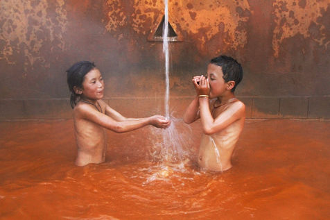 Somewhere in the Himalayas, 40°C water sprang up from the side of a mountain, giving birth to the sacred springs of Tatopani. The red and ferruginous waters of this thermal resurgence had medicinal and purifying virtues according to the Nepalese and the Indians who went there on foot from regions sometimes very far away. Every year, thousands and thousands of Buddhist and Hindu pilgrims traveled here to heal a disease of their soul or body. Before their destruction by the April 2015 earthquake in Nepal, these unique sources in the world were located in a small mountain village accessible only by a footpath, the village of Tatopani whose houses are built of wood. Perched at 2600 m in the Tamang region, these springs were a focal point of the "Tamang Heritage Trail", a major hiking trail in this part of the Himalayas surrounded by snow-capped peaks at over 7000 meters (the source is near the Langtang Lirung massif). In addition, these sources were also used for everyday life: cleaning vegetables, baths, laundry, irrigation ... This photographic series illustrate what were the hot springs of Tatopani before they dried up after the powerful earthquake of 2015 that changed the configuration of the bowels of the Earth.