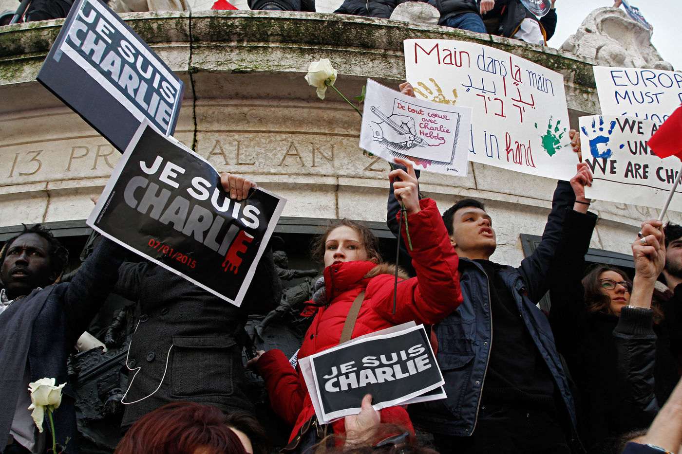During these events, Charb, Cabu, Wolinski and Tignous were murdered. They were cartoonists working at the redaction of satirical weekly newspaper Charlie Hebdo.