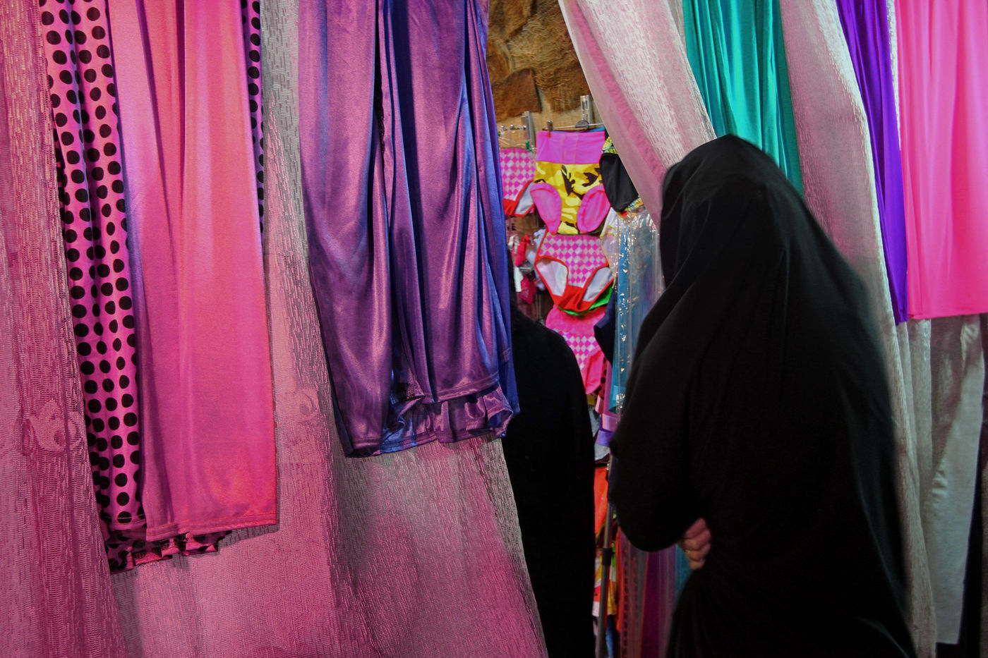 In Iran, since the Islamic Revolution of 1979, wearing the veil is compulsory from the age of nine. Most women wear a large black and enveloping chador, as illustrated in the image series. Yet, despite the constraints imposed on them by the Islamic Republic, the 35 million Iranian women gain new spaces of freedom each day. Thus the younger generations adopt less rigorous dress codes. They wear more colorful veils. In urban areas, the hijab (less covering) gradually replaces the traditional black chador. Young women show their hair more and more. Make-up comes back in Persian cities. Women proudly show trendy sun glasses, fashion accessories and modern mobile phones. Iranian women, among the most educated in the world (the female literacy rate and the inscription rate in primary school are close to 99% and 100% respectively), try to evolve in a society often judged discriminatory. This series illustrate both aspects of the condition of the Iranian women, those who dress traditionally and those who adopt new fashion codes.