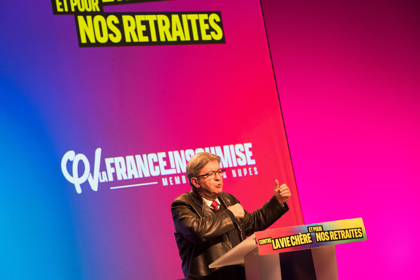 On December 16, 2022, at the Saint-Etienne Convention Center, Jean-Luc Mélenchon and Andrée Taurinya, a member of Parliament from the Loire Valley, were at a meeting against the high cost of living.