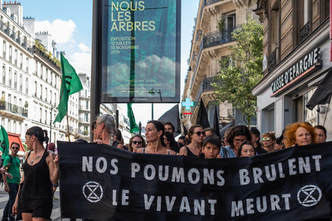 Pacifist action by the Extinction Rébellion group in Paris, in reaction to the fires in the Amazon and the inaction of the states.
