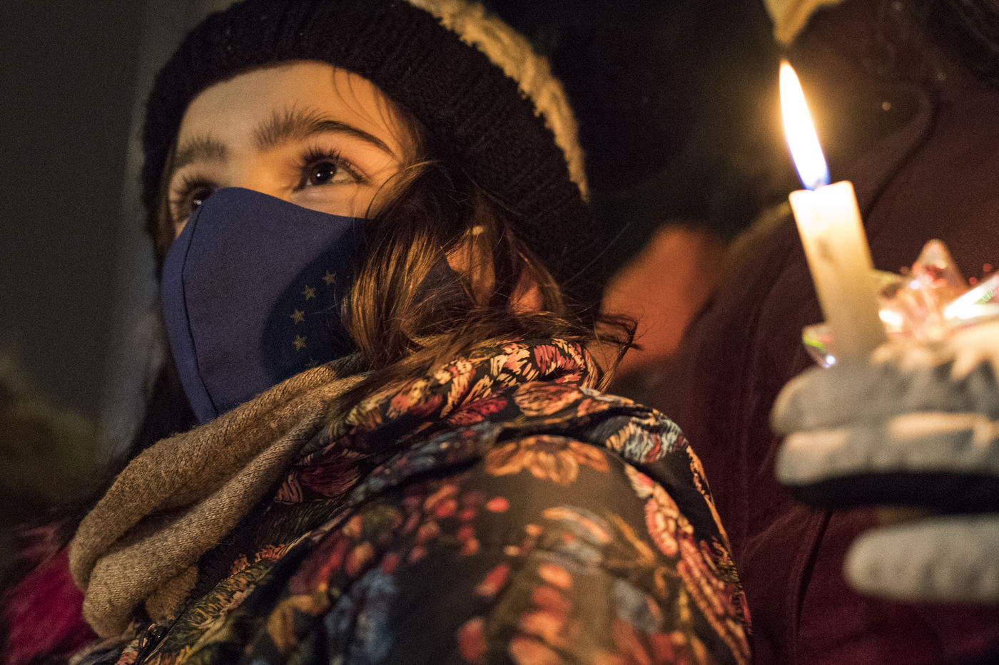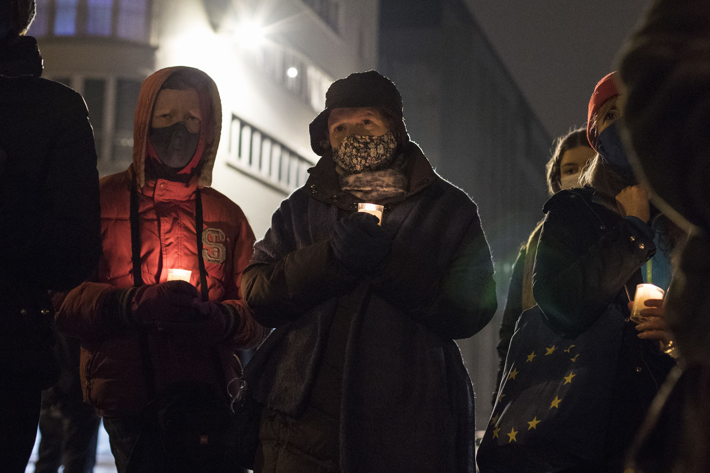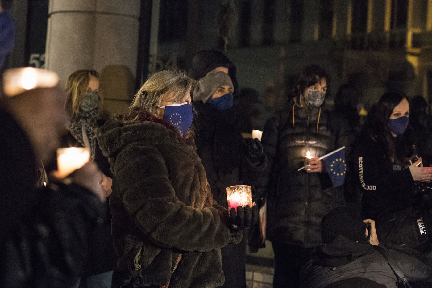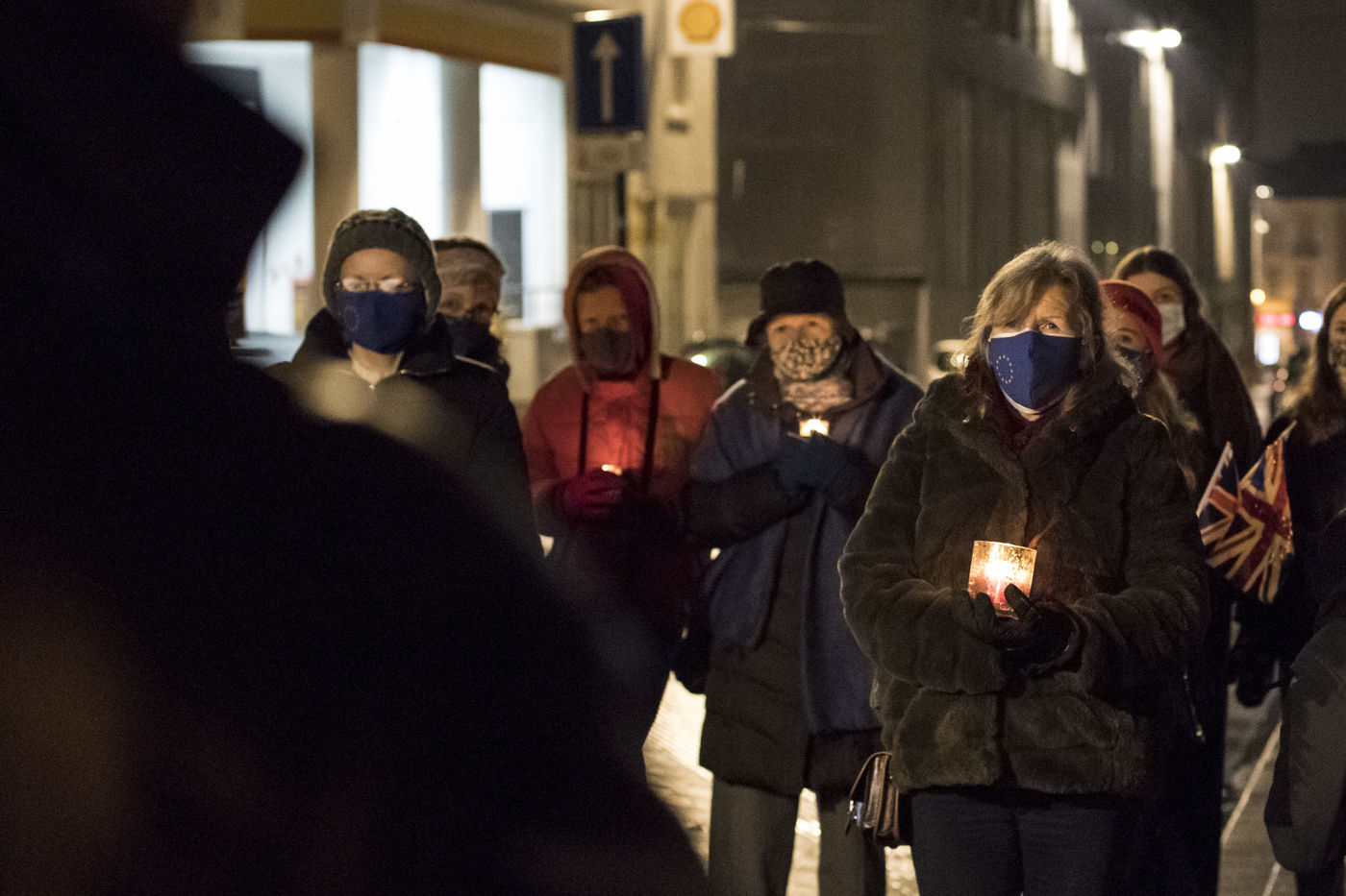 Démonstration No-Brexit à proximité des institutions européennes la nuit précedant la sortie du Royaume Uni de l'Union Européenne. Brexit est un résultat du référendum du 23 juin 2016, à l'occasion duquel la population britannique a voté en faveur d'une sortie du Royaume-Uni de l'Union européenne à hauteur de 51,9 %.