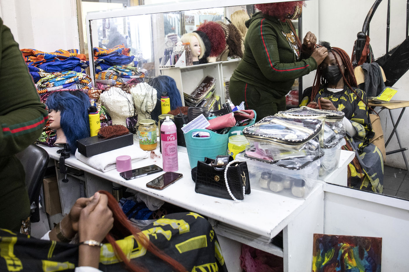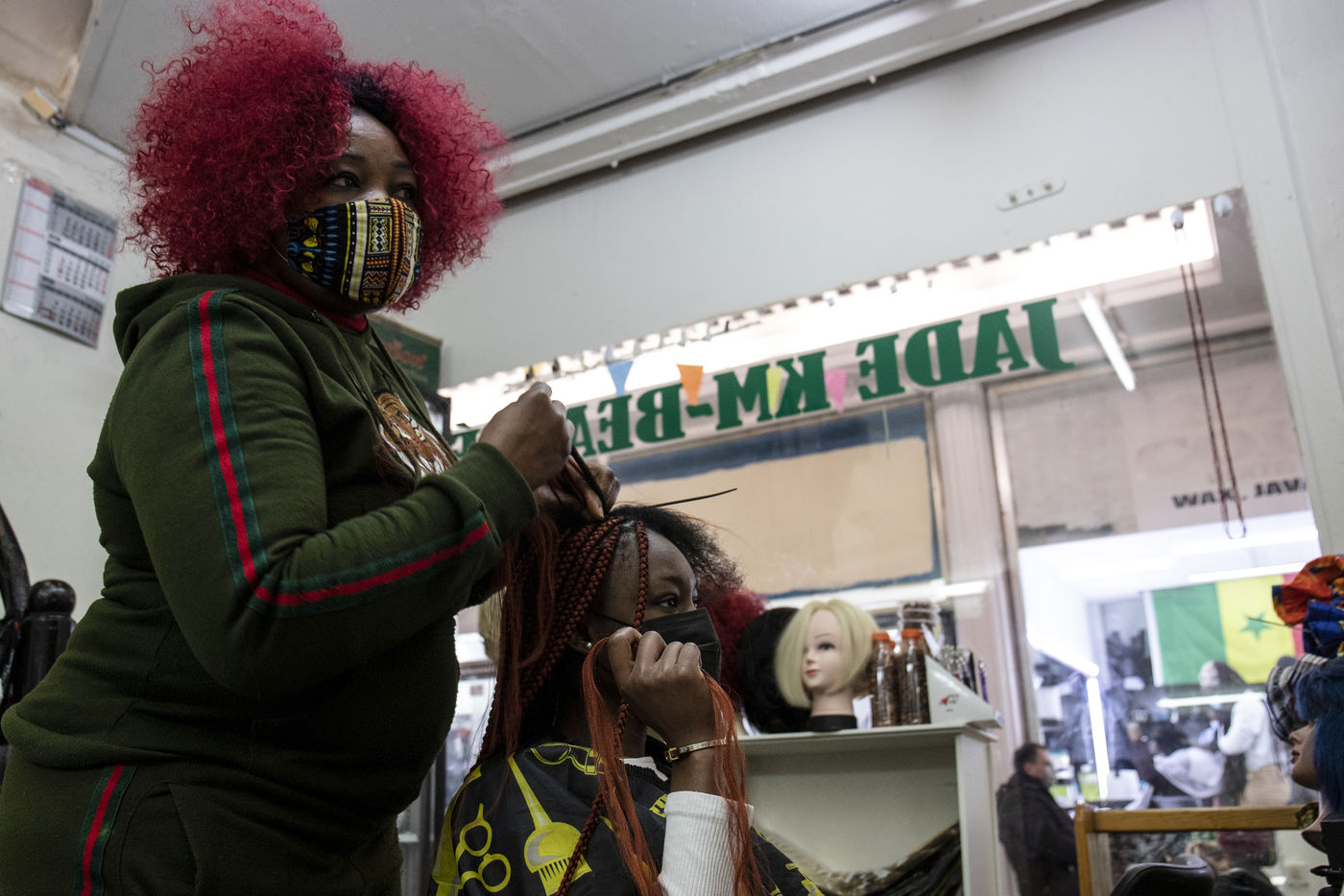 Hairdressers shops in Matongé, a multi-ethnic neighborhood in Brussels. Hairdressers were allowed to reopen in Belgium on February 13, 2021 after being closed to limit the spread of Covid-19.