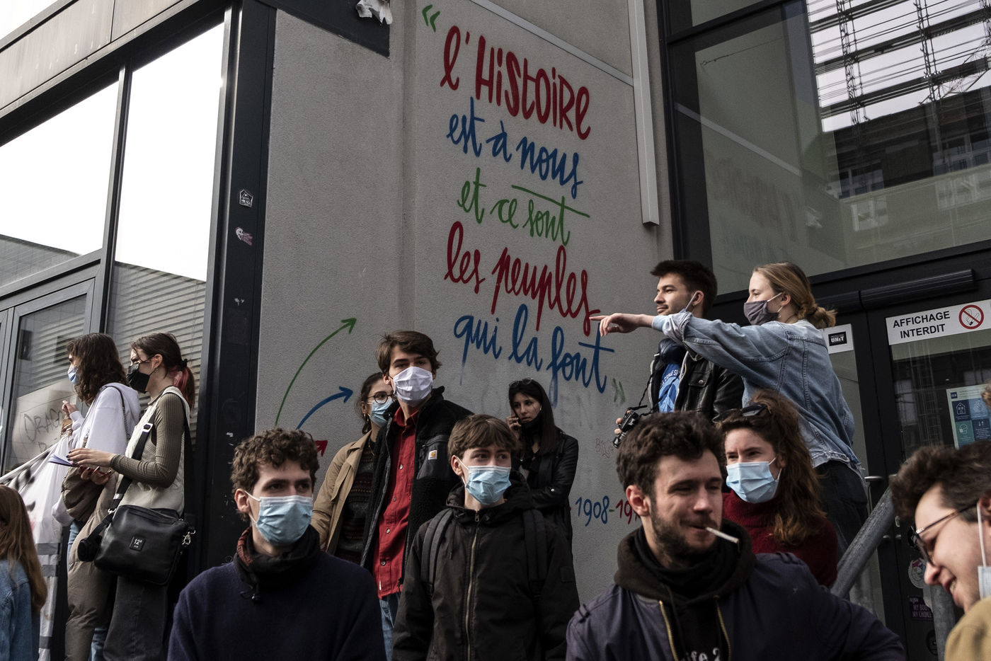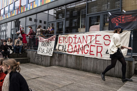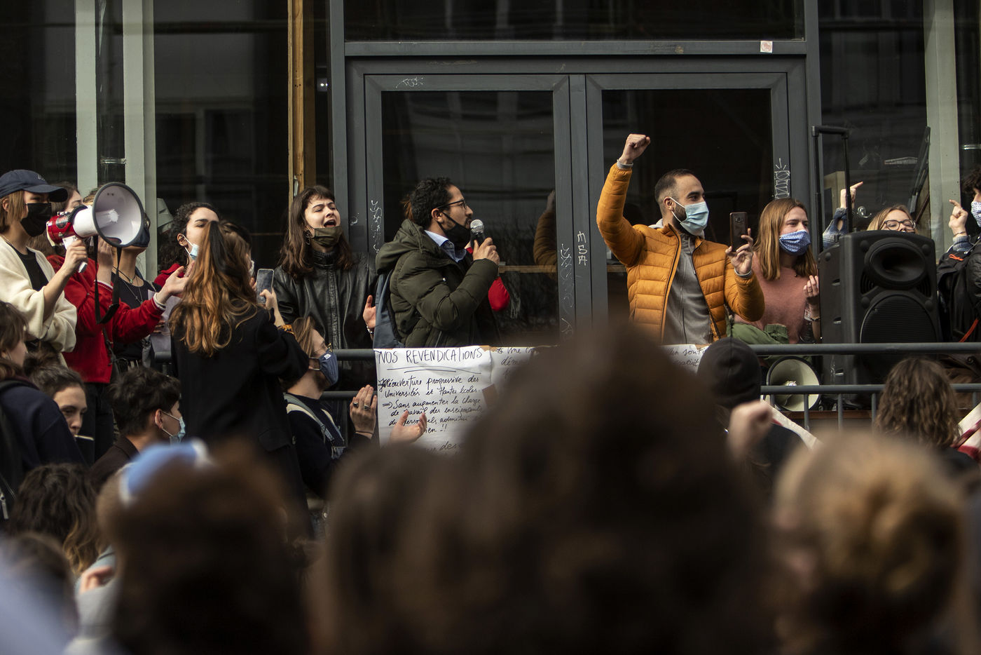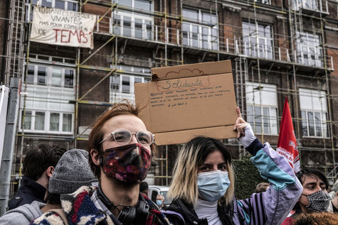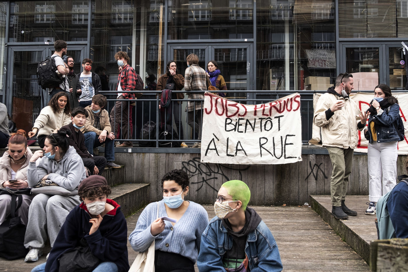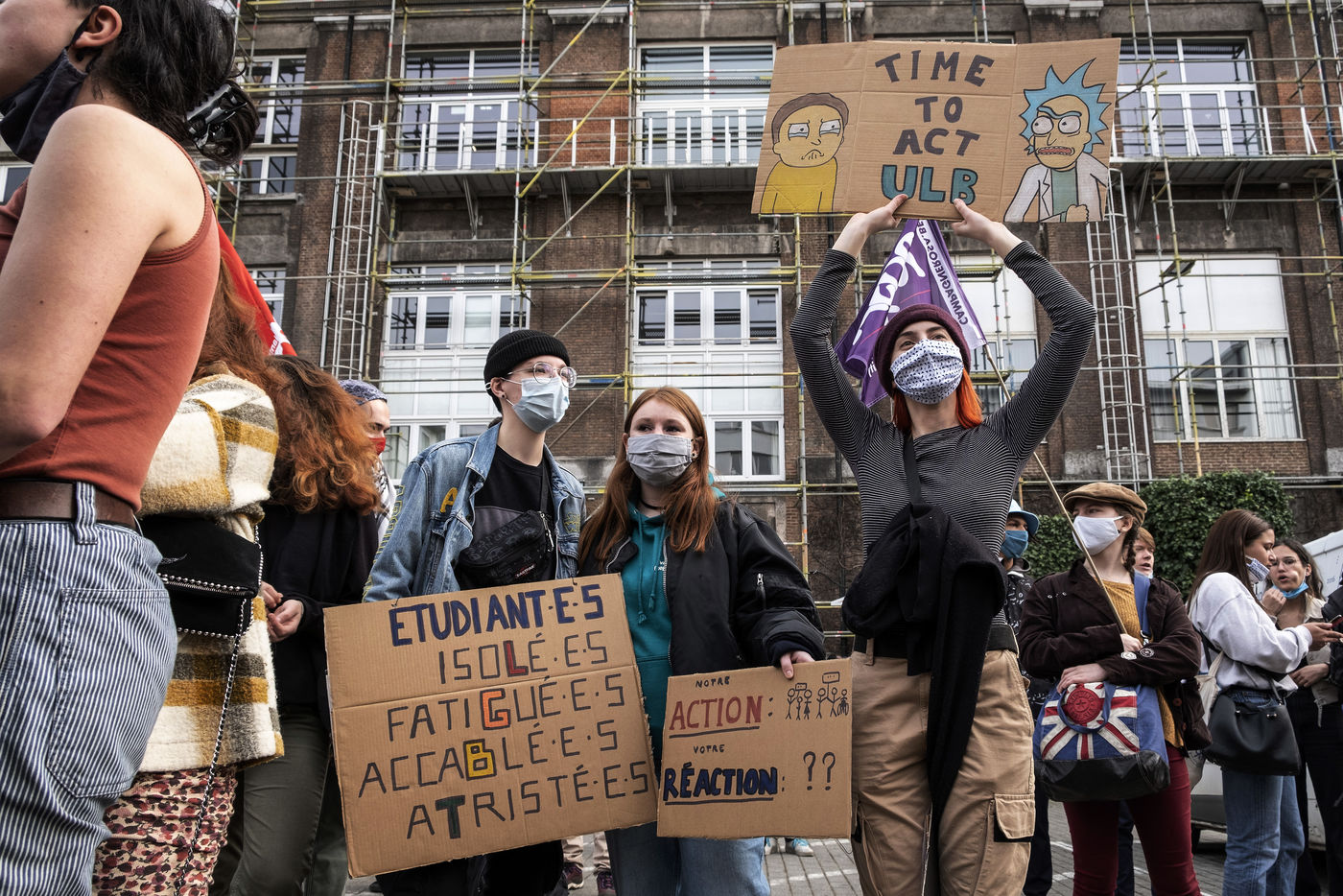 Students protest at Libre University in Brussels against the isolation and precariousness due to the Covid-19 crisis. They denounce the lack of resources put in place since the start of the pandemic, as well as the insufficiency of the new measures announced and the non-consultation of the government and universities with students with respect to the decisions taken.