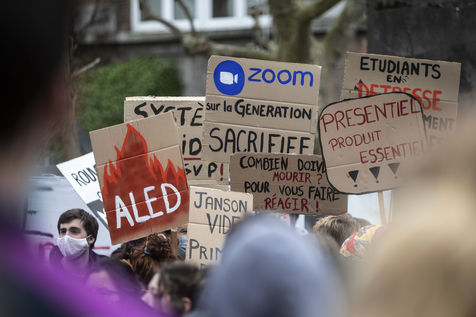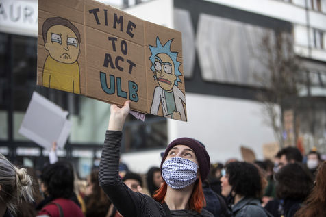 Les étudiants protestent à l'Université Libre de Bruxelles contre l'isolement et la précarité liés à la crise Covid-19. Ils dénoncent le manque de moyens mis en place depuis le début de la pandémie, ainsi que l'insuffisance des nouvelles mesures annoncées et la non concertation du gouvernement et des universités avec les étudiants vis-à-vis des décisions prises.