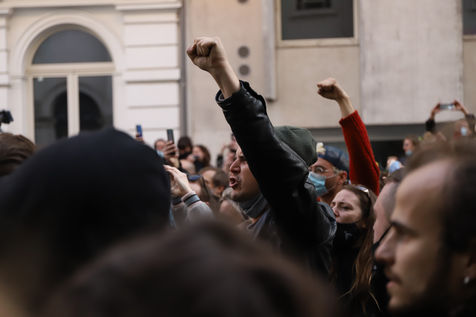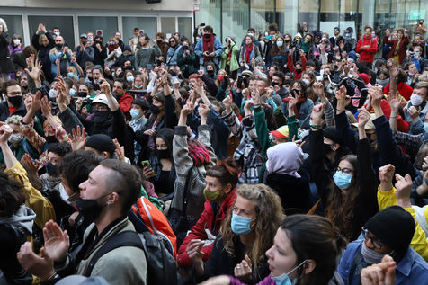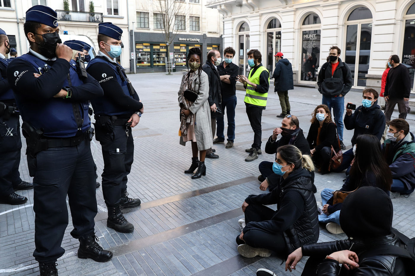 Dernier jour d'occupation du théâtre La Monnaie à Bruxelles. La police intervient pour expulser les occupants. Le théâtre avait été occupé le 3 Avril 2021 par un collectif d'artistes, de travailleurs du secteur culturel et d'étudiants pour protester contre la gestion de la crise sanitaire par le gouvernement fédéral, notamment en ce qui concerne les employés du secteur culturel et artistique et de l'hôtellerie.