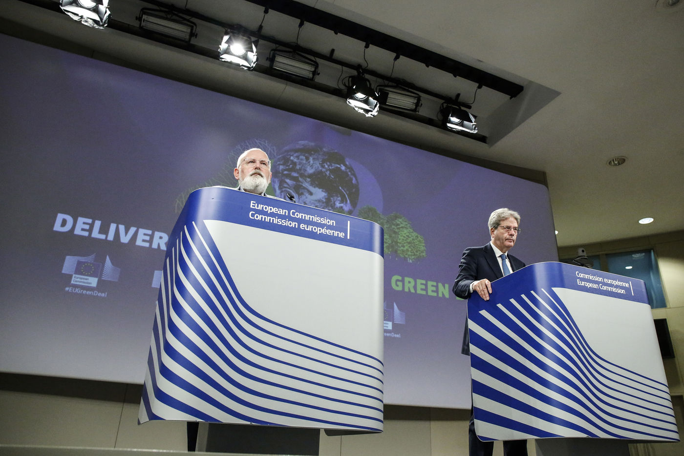 Belgium, Brussels, 2021/07/15. Press conference by Executive Vice-President of the European Commission Frans Timmermans and Commissioner Paolo Gentiloni on the Carbon Border Adjustment Mechanism and Energy Taxation, followed by a press conference by Timmermans and Commissioner Valean on making transport greener. On July 14, 2021, the European Union unveiled sweeping new legislation to help meet its pledge to cut emissions of the gases that cause global warming by 55% over this decade, including a controversial plan to tax foreign companies for the pollution they cause.