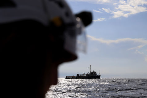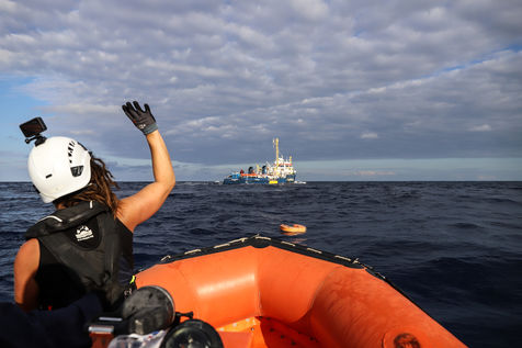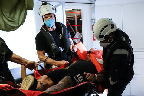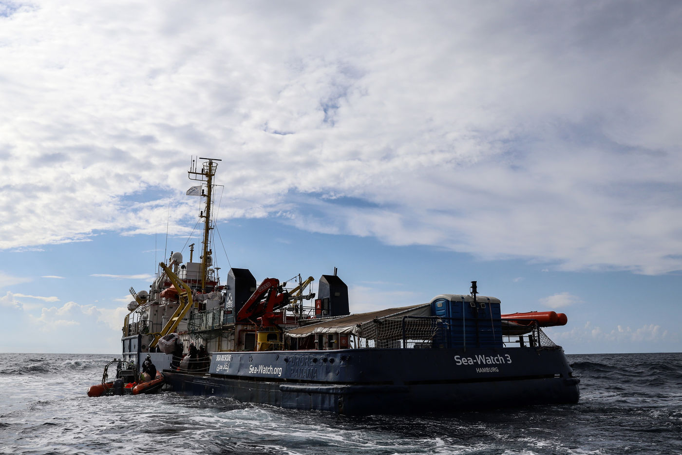 The humanitarian ship Sea-Watch 3 leaves the port of Burriana, Spain, where it was anchored, and heads towards the international search and rescue zone in the Mediterranean. During the transit, the crew keeps training with security and rescue protocols.