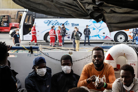 Migrants saved by the humanitarian rescue ship Sea-Watch 3 disembark in the port of Pozzallo, Sicily