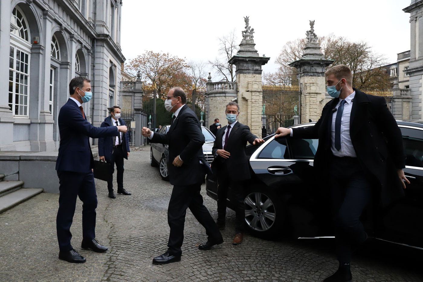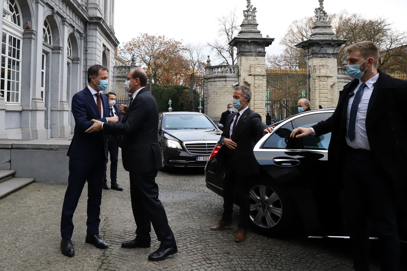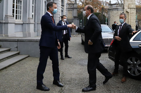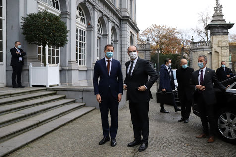 Le Premier ministre français Jean Castex, accompagné de plusieurs ministres, s'est rendu à Bruxelles le lundi 22 novembre 2021, dans le cadre des rencontres de ministres franco-belges dit du « Val Duchesse ». La délégation française a été reçue au Palais d'Egmont par le Premier Ministre belge Alexander De Croo et d'autres ministres. La rencontre avait pour objectif principal d?améliorer la coordination stratégique et opérationnelle en matière de sécurité et de lutte contre le terrorisme. A la fin du meeting, Jean Castex et Alexander De Croo ont participé à une cérémonie de commémoration devant le monument aux victimes des attentats terroristes de 2016 à Bruxelles.