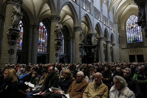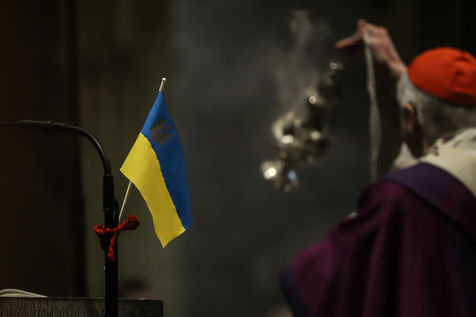 Mass for peace in Ukraine at St. Michel and Gudule Cathedral in Brussels, Belgium, March 13, 2022.