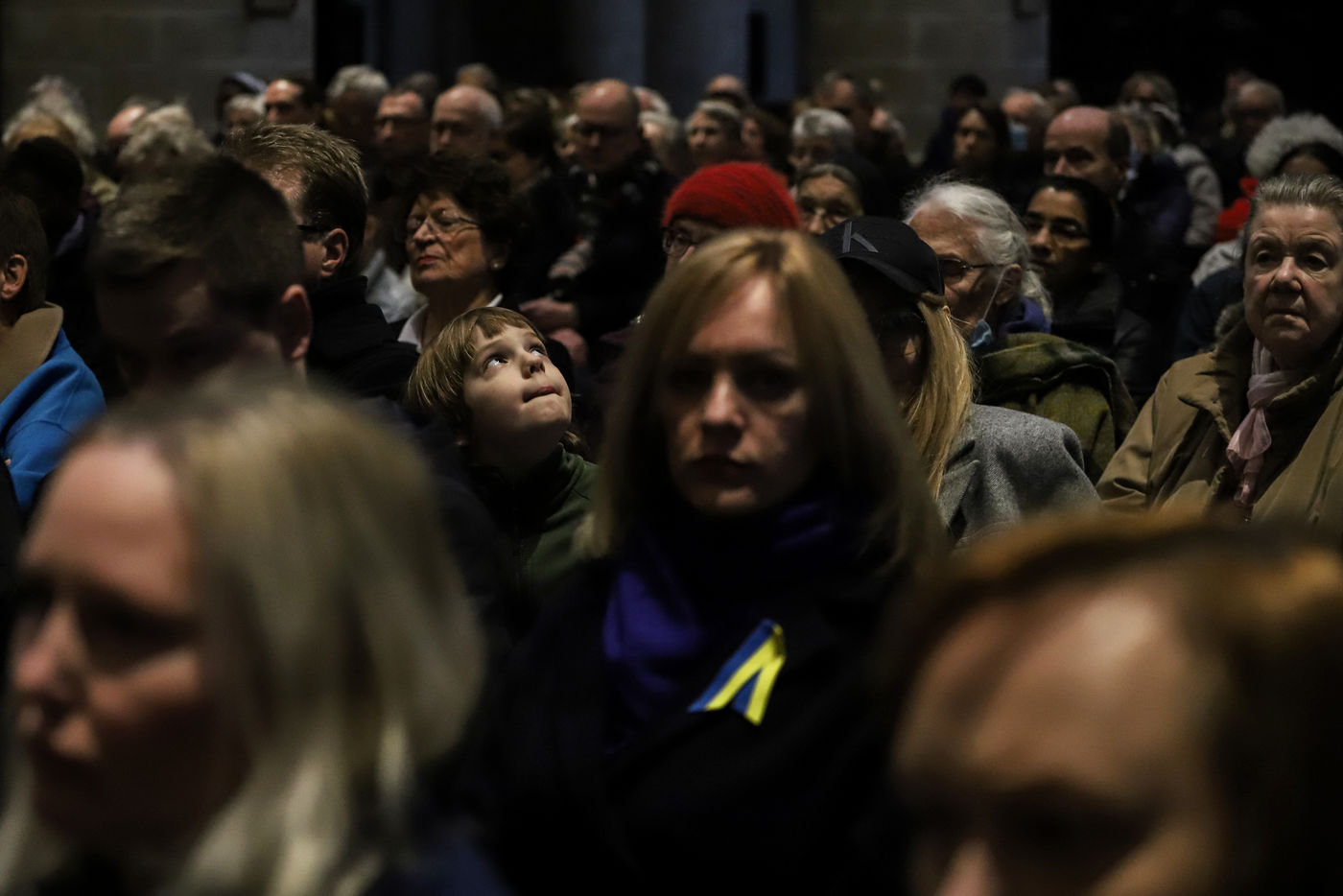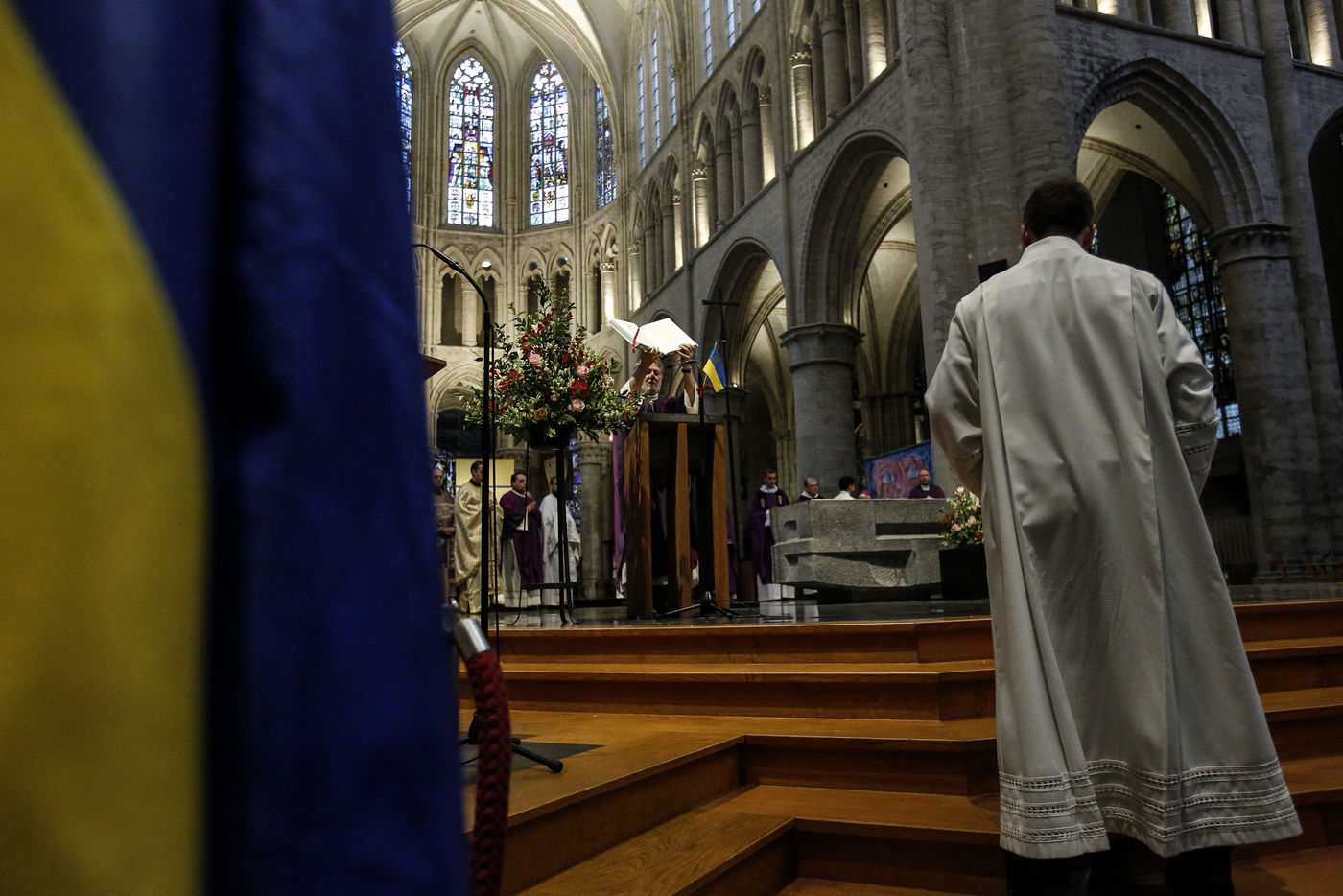 Messe pour la paix en Ukraine à la Cathedrale de Sts-Michel-et-Gudule à Bruxelles, Belgique, 13 Mars 2022.