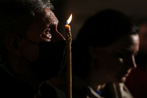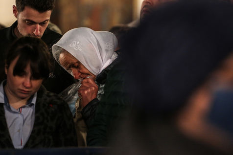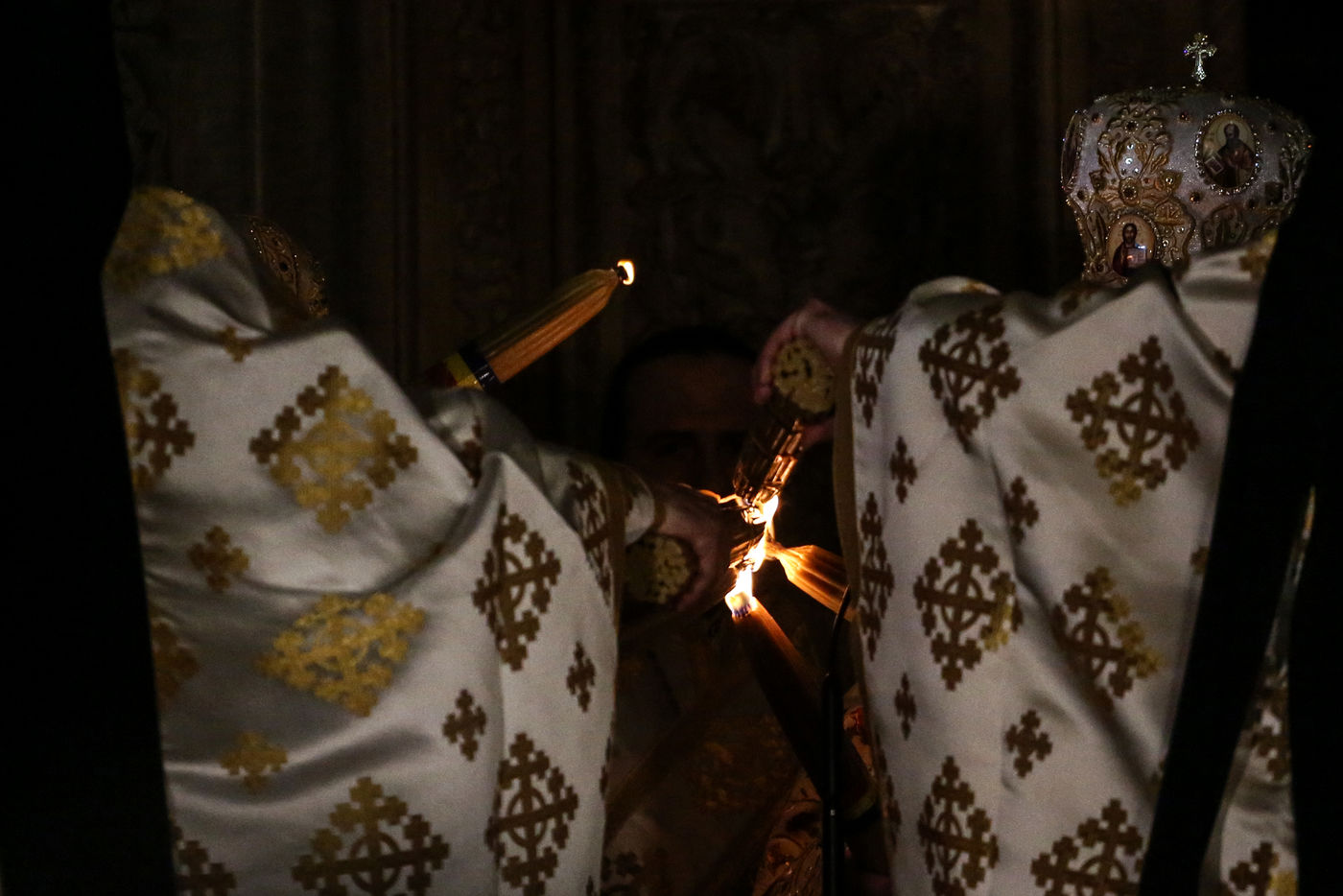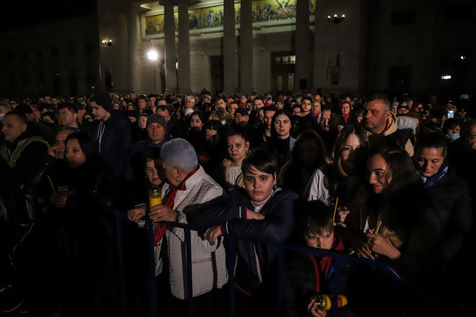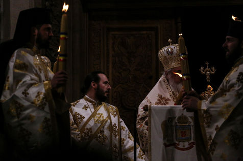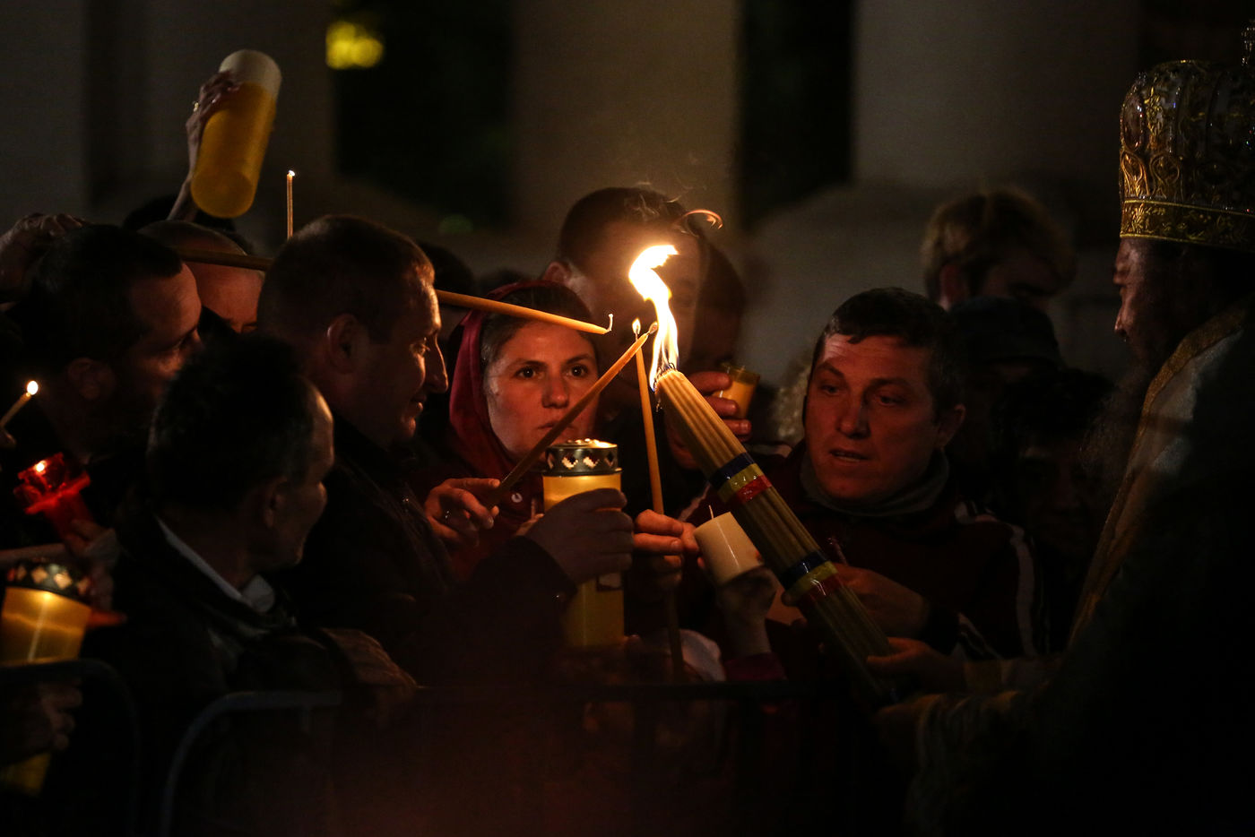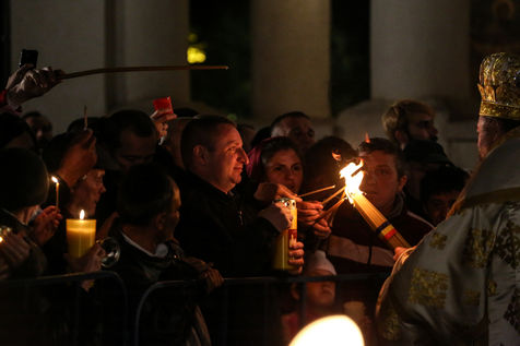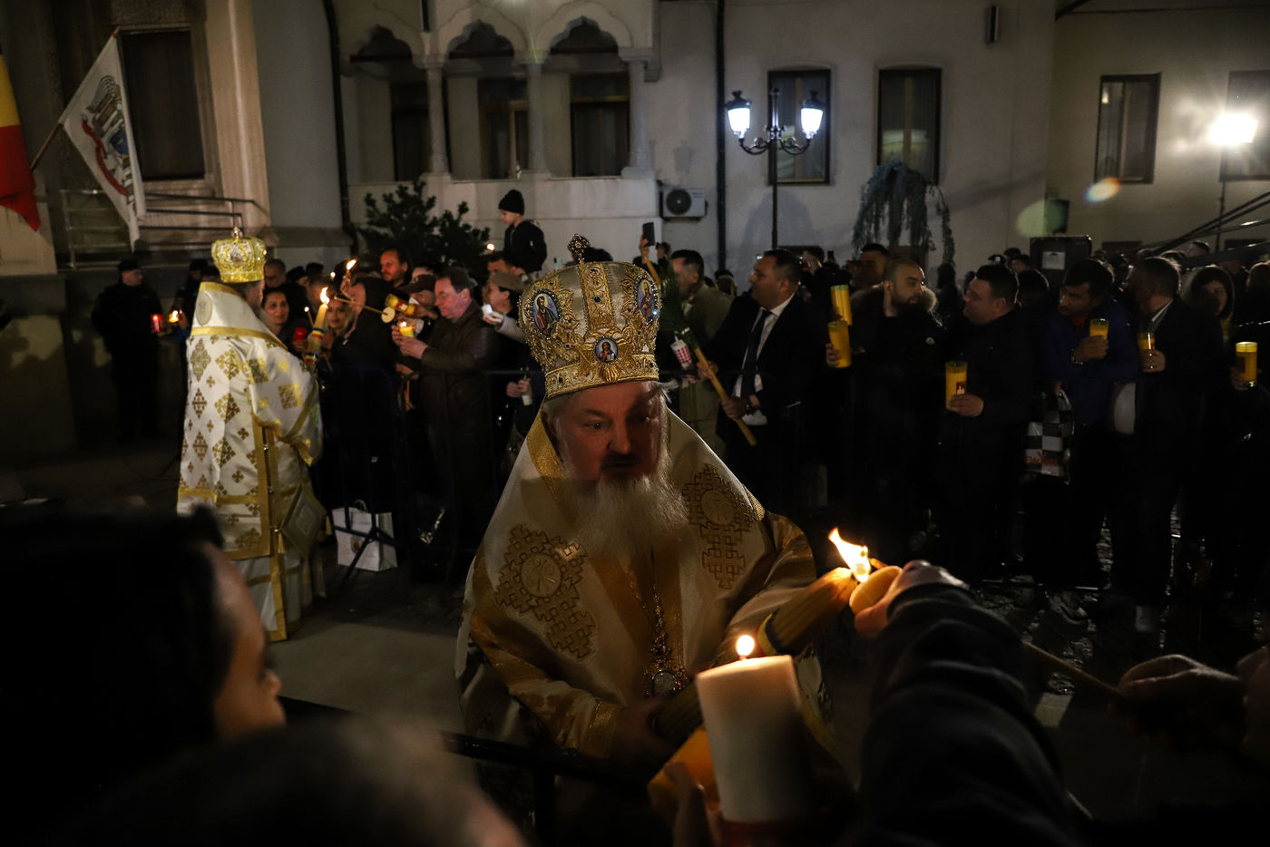 Bucharest, Romania, 2022/04/24. Celebration of Orthodox Easter at the Patriarchy Hill on the night between Saturday and Easter Sunday.