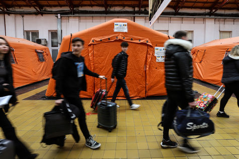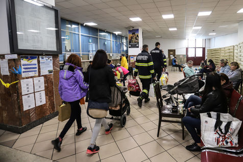 Ukrainian refugees at Bucharest train station