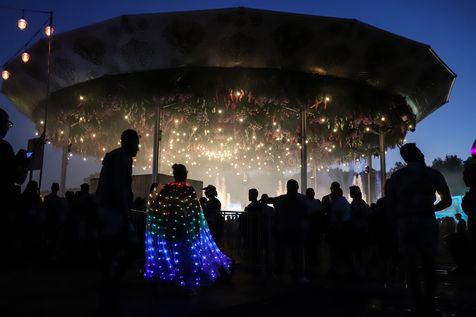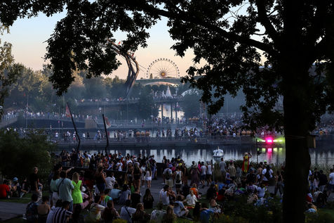 Belgium, Boom, 2022/07/15. People attend day one of Tomorrowland music festival. This is the first edition of the festival after a two-year break due to the Covid-19 pandemic.