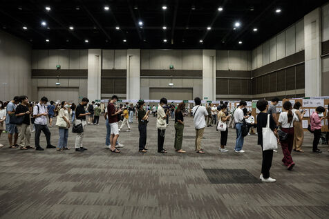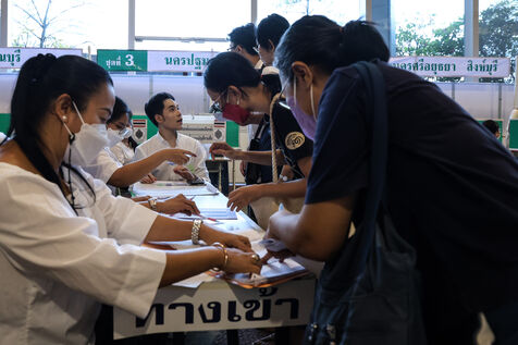 Thailande, Bangkok, 2023/05/07. Les élécteurs thailandais se rendent au bureau de vote pour le vote anticipe avant les élections générales.