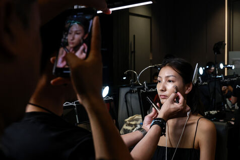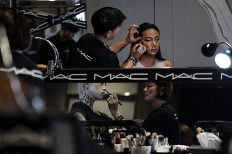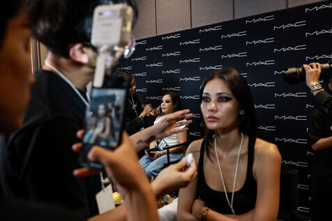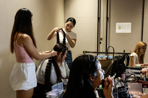 Models prepare backstage before Issue Thailand and Poem shows during the Siam Paragon Bangkok International Fashion Week 2024 at Siam Paragon mall in Bangkok, Thailand on October 4, 2024. Bangkok International Fashion Week 2024 is set under the concept “Envision the Future" and involves a collaboration with 15 prominent Thai fashion brands and leading international designers.