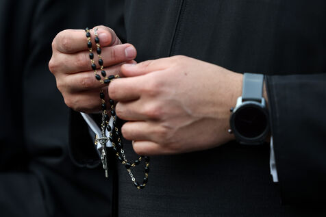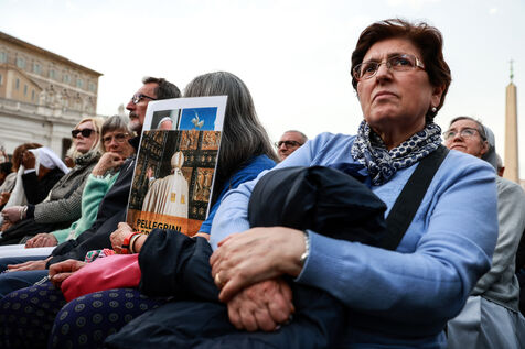 Faithful attend a rosary in homage to Pope Francis following his death in Saint Peter's Square in Vatican City, Vatican on April 21, 2025. The Vatican announced that Pope Francis, 88, died on April 21st in the morning.