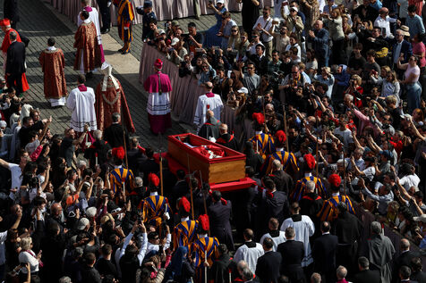 The coffin of the late Pope Francis is transported to St Peter's Basilica following his death, in the Vatican on April 23, 2025. The Vatican announced that Pope Francis, 88, died on April 21st in the morning.