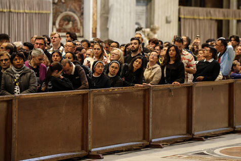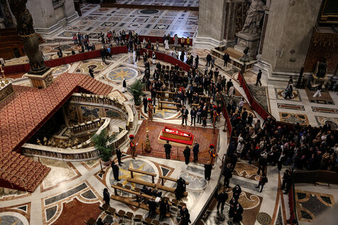 Les fidèles rendent hommage au corps du pape François à la basilique Saint-Pierre, après la mort du pape, au Vatican, le 24 avril 2025.
