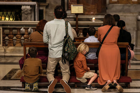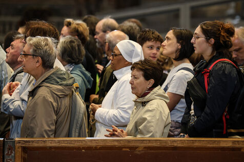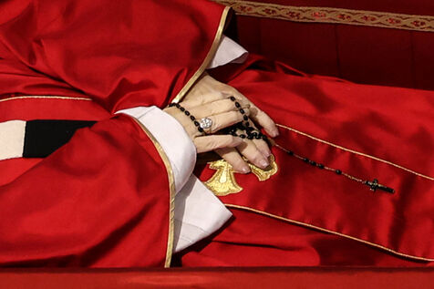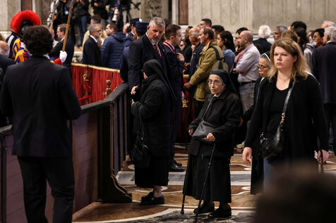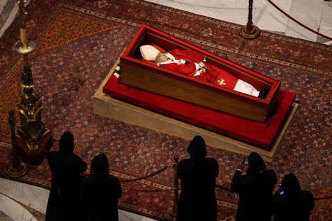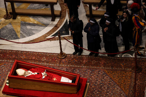Devotees pay their respects to Pope Francis's body at St Peter's Basilica, following the Pope's death, in the Vatican on April 24, 2025.