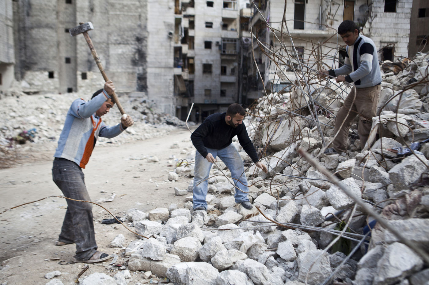 Il y a maintenant plus de deux ans que la révolution syrienne a commencé. C'est aujourd'hui une guerre civile dont la population est la première victime. A Alep et dans les villages alentour, la vie continue malgré la menace quotidienne des bombardements aériens du régime. Alors que l'électricité, l'eau potable et le pain sont rationnés, les marchés restent ouverts et des écoles improvisées dans les mosquées ont été créées par des conseils civils comme substitution aux nombreuses écoles bombardées dans la région. Sur le front, les membres de l’Armée Syrienne Libre travaillent à la libération des dernières zones tenues par l’armée régulière avant de pouvoir se déplacer vers Damas. Cette série d’images, prises entre octobre 2012 et mars 2013, vise à traduire le quotidien des Syriens sous la menace des bombes.