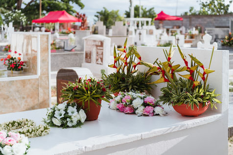 Premier novembre dans un cimetière catholique en Polynésie française