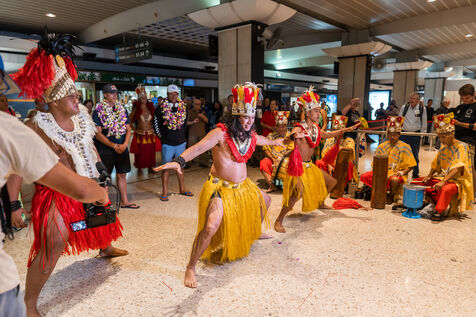 The two Tahitian surfers Vahine Fierro and Kauli Vaast, French team coach for Paris 2024 Hira Teriinatoofa, and manager Hugo Palmarini from the French Surfing Federation, were welcomed at Tahiti Faa'a International Airport. The two athletes qualified a few days ago to represent France in the surfing event at the Paris 2024 Olympic Games following the ISA Worlds in El Salvador.