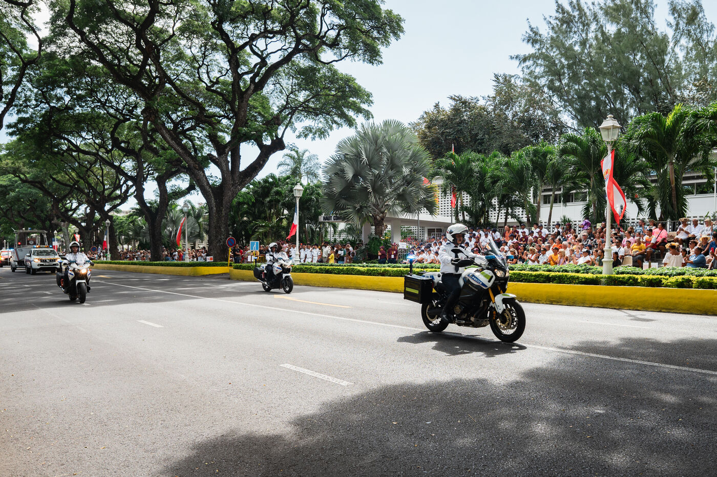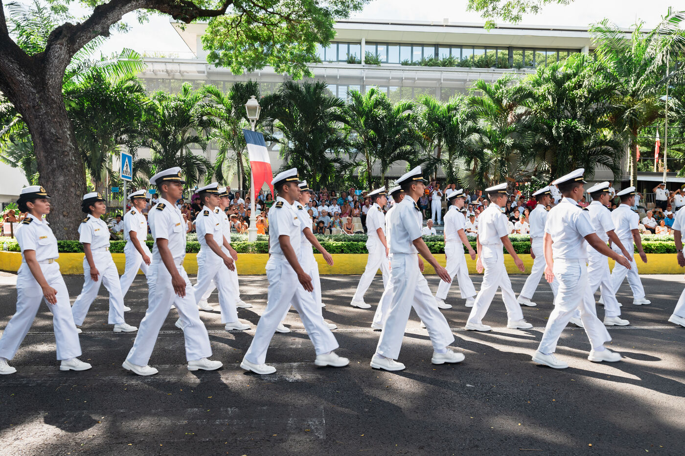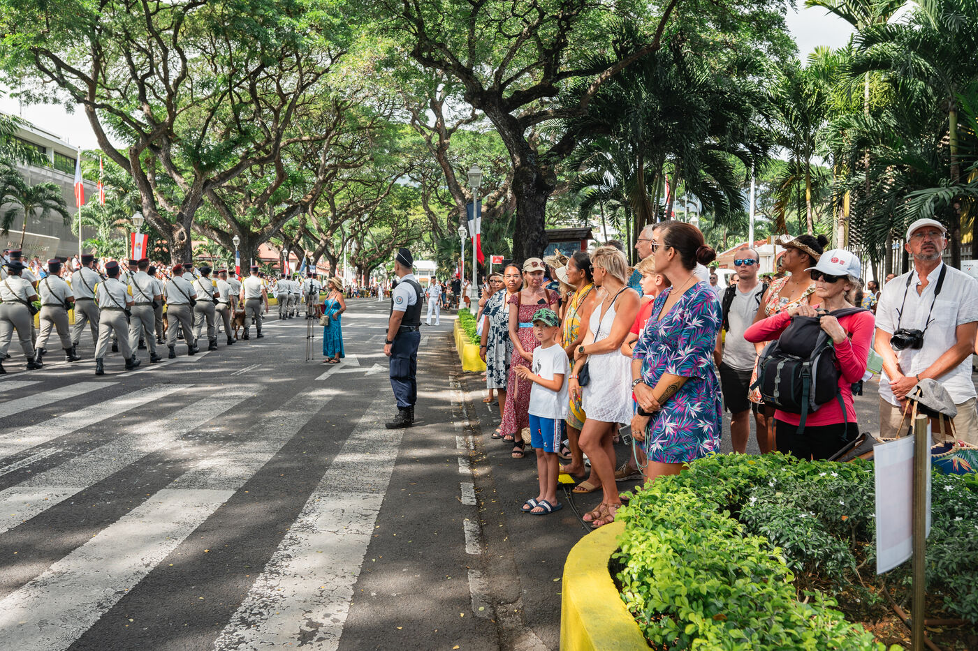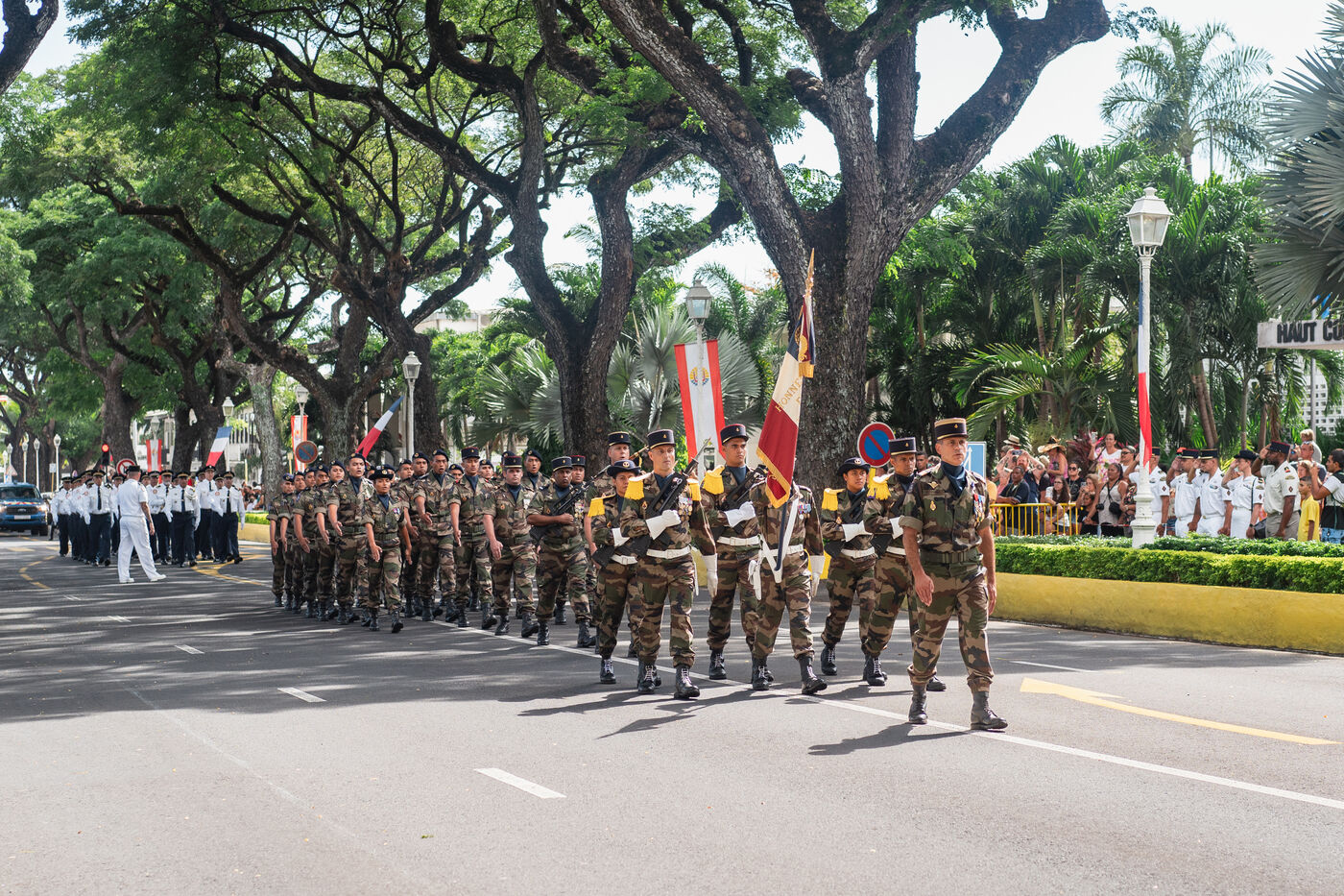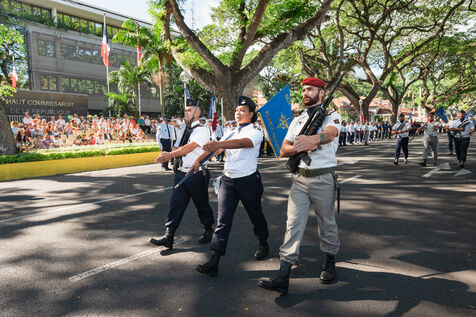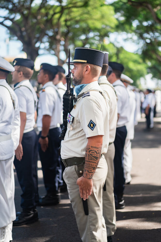 Le défilé du 14 juillet s'est tenu sur l'avenue Pouvanaa a Oopa, entre le Haut-Commissariat de la République française en Polynésie française et le Monument aux morts. Les forces armées françaises présentes sur le territoire ainsi qu'une delegation de la marine nationale péruvienne, en escale à Papeete, ont défilé devant les officiels présents : le Haut-Commissaire Eric Spitz, le président de la Polynésie française Moetai Brotherson, le président de l'Assemblée de la Polynésie francaise Antony Geros, les députés à l'Assemblée nationale Steve Chailloux, Tematai Le Gayic et Mereana Reid Arbelot, et les représentants du CESEC Tu Yan et Eugène Sommers.