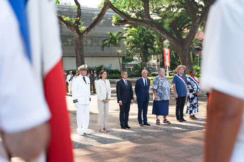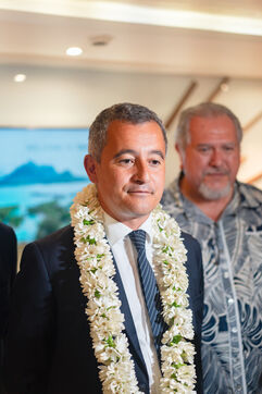 Déplacement en Polynésie française du ministre de l'Interieur et des Outre-mer Gérald Darmanin, de la Ministre des Sports et des Jeux Olympiques et Paralympiques Amélie Oudea-Castera, et du Ministre délégué chargé des Outre-mer Philippe Vigier. A leur arrivée à l'aéroport international de Tahiti-Faa'a, ils ont été accueilli comme le veut la tradition par un groupe de danse tahitienne, avant de se rendre à Papeete pour un dépôt de gerbe au monument aux morts et une visite de courtoisie à Moetai Brotherson, Président de la Polynésie française, et à Antony Géros président de l'Assemblée de la Polynésie française.