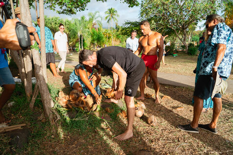 Tahiti - Tony Estanguet introduced to traditional Polynesian sports