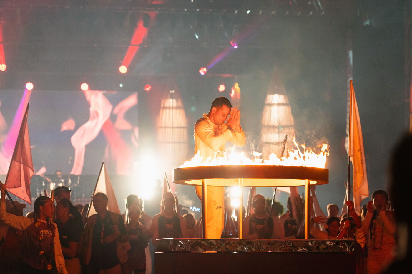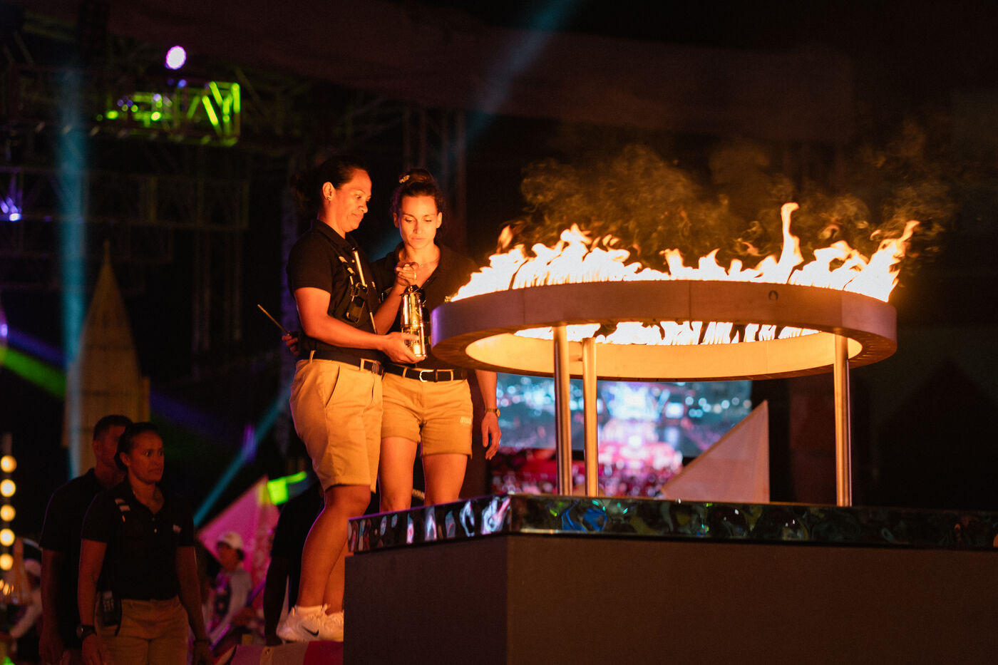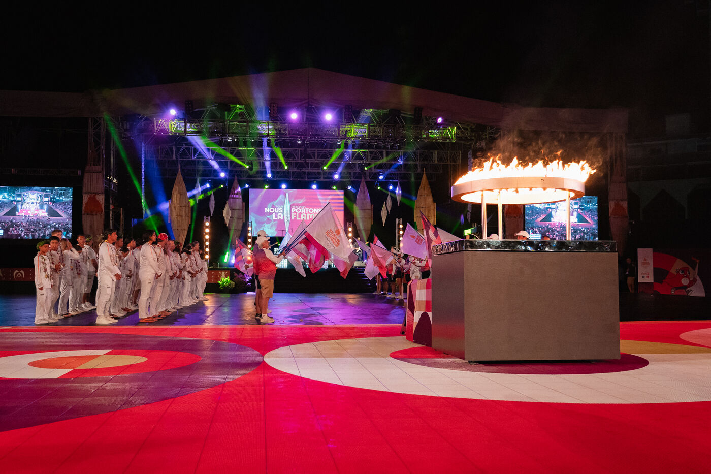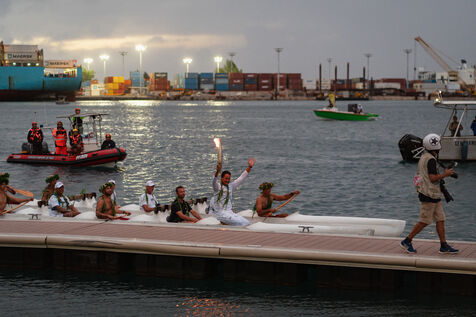 The thirty-first leg of the Paris 2024 Olympic Torch Relay is taking place in Tahiti, where the surfing events of the Paris 2024 Olympic Games will be held. The final city in the relay is the capital, Papeete.