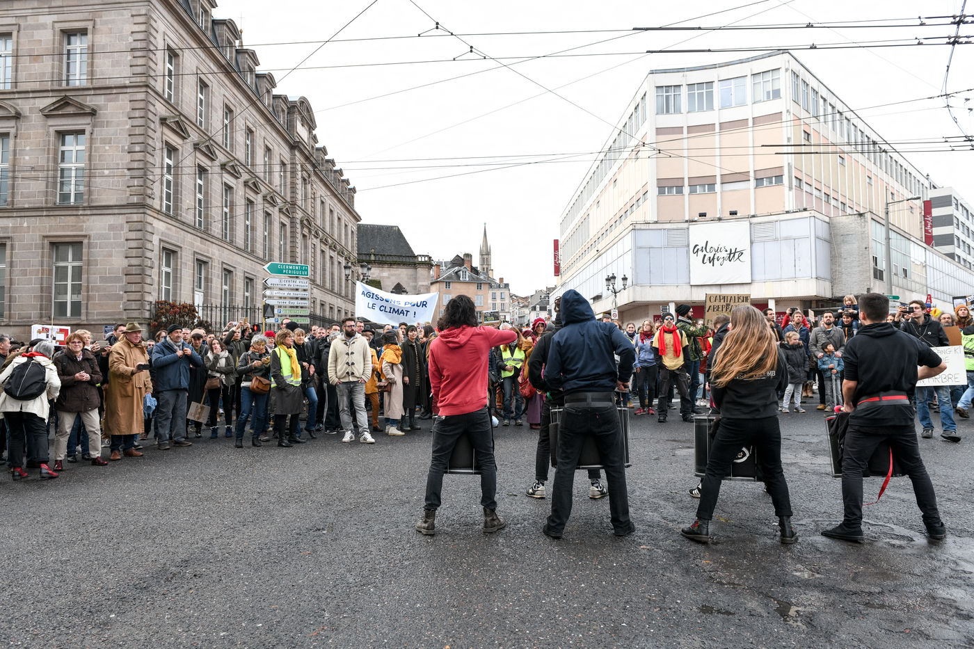 Le 8 décembre avait lieu la troisième marche pour le climat à Limoges, avec des participants de plus en plus nombreux. Cette fois l'ambiance était plus électrique à Limoges en raison du mouvement national des gilets jaunes. le collectif de la ligne Limoges-Ussel sont arrivés à la gare pour rejoindre la marche. Ils ont été accueillis par des policiers de la section d'intervention : fouilles et cinq militants menotés. Ces militants venaient manifester, rejoints par les "insoumis du plateau", pour dénoncer la suppression de lignes dites rurales, notamment la ligne Limoges-Ussel qui dessert le territoire de Millevaches. Ils ont ensuite occupé les voies.