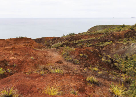 In this metal-rich overseas region in the Pacific, laterite is a brick-red soil resulting from the weathering of iron-bearing rock. Although the laterite has a low nickel content, the vastness of the available land in this French overseas territory means that it has been mined since the 19th century.