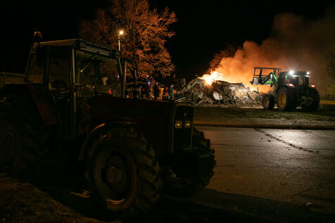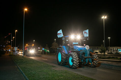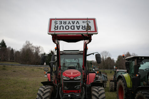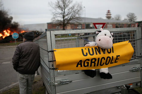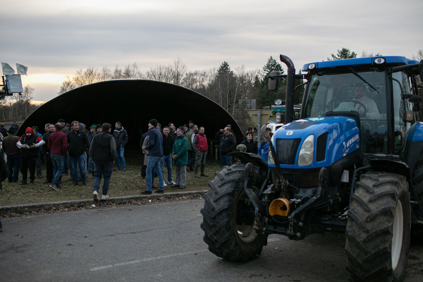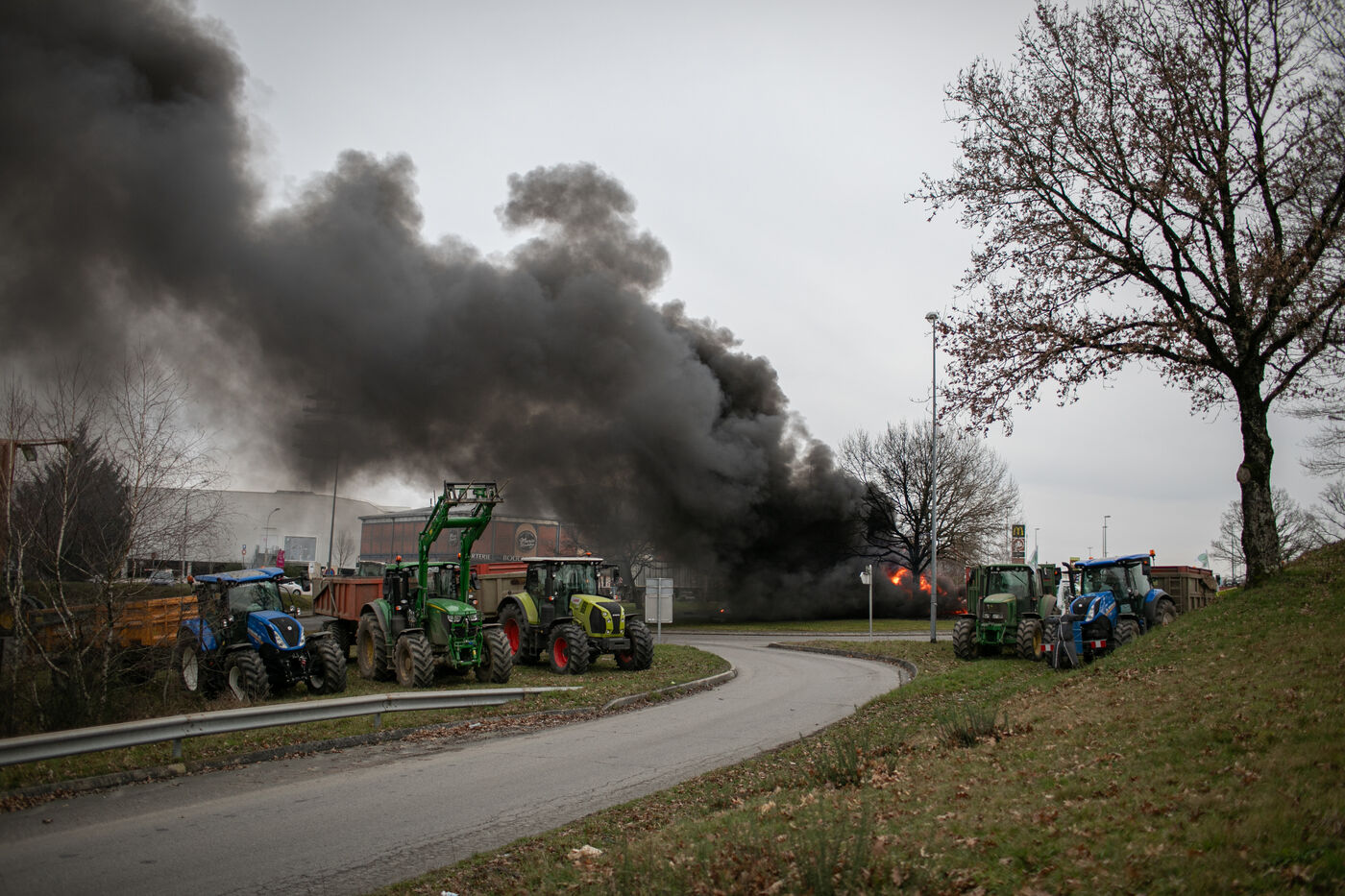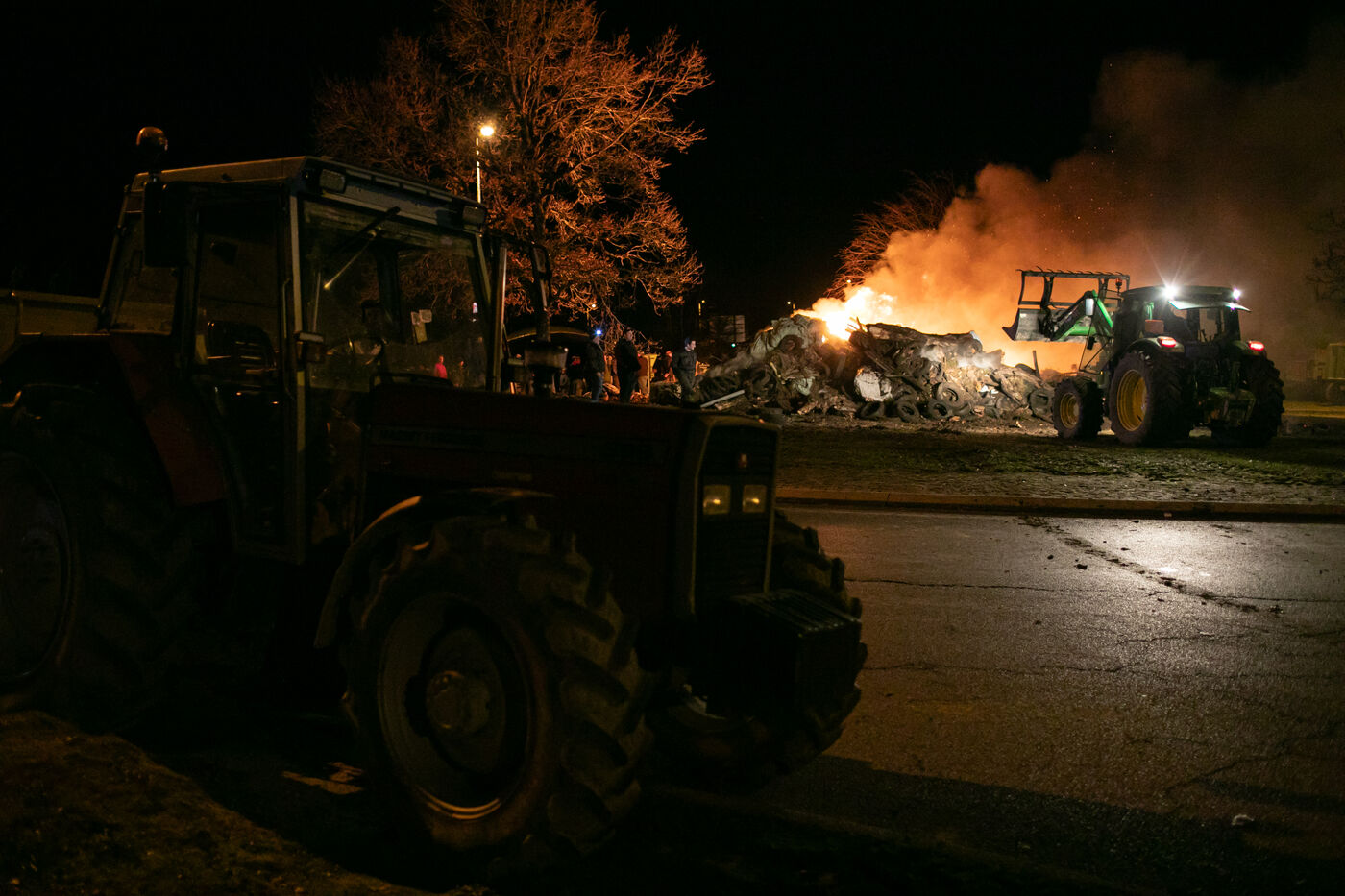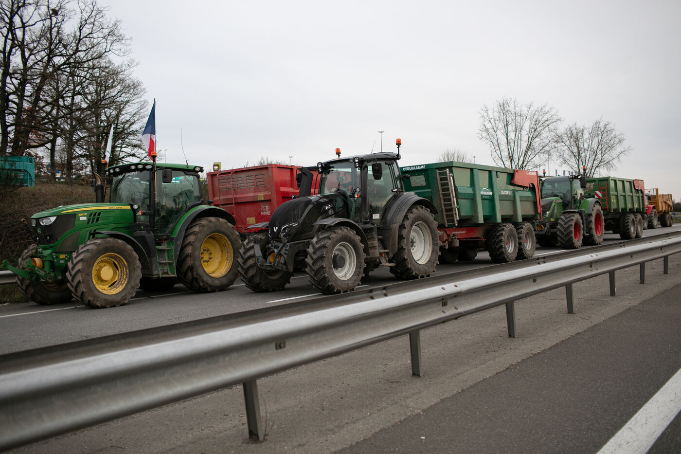 FRANCE, Limoges January 29, 2024, Blockade of the A20 at Boisseuil in Limoges' southern commercial zone. The FNSEA and Jeunes Agriculteurs unions called for a siege of Paris and a blockade of the main freeways from 2pm this Monday, after failing to get a satisfactory response from the government's announcements, for all farmers' unions. In particular, they are calling for a simplification of environmental standards, better remuneration and the introduction of levers to compensate for the taxation of non-road diesel fuel. Photography for Victoria Valdivia Trigo / Hans Lucas.