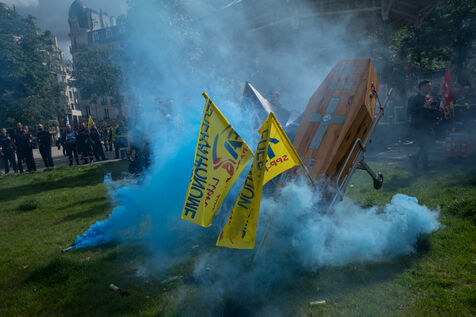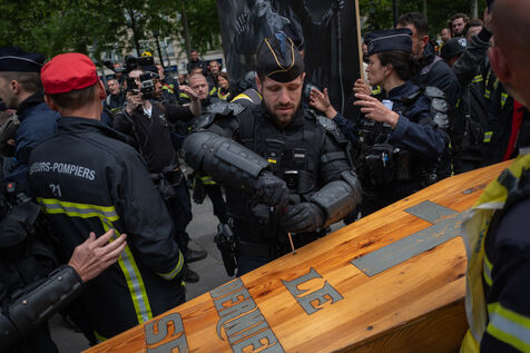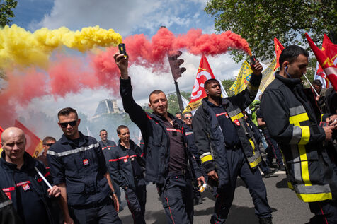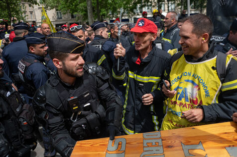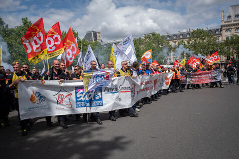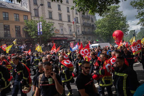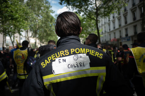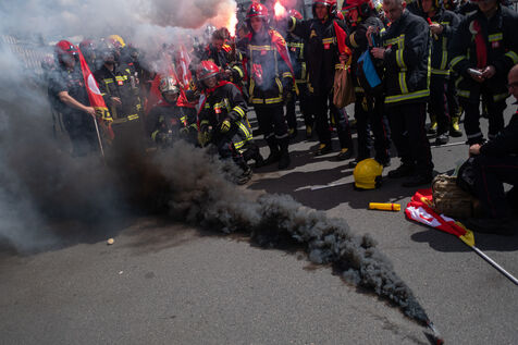 FRANCE, Paris May 6, 2024, SDIS firefighters strike. Nine firefighters' unions have joined forces to demand more resources, an increase in their firefighting bonus, and measures to protect their health and quality of life at work.