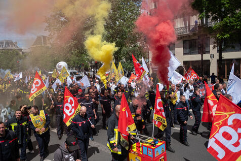 FRANCE, Paris 6 mai 2024, grève des sapeurs pompiers SDIS. Neuf syndicats des sapeurs pompiers se sont unis pour réclamer davantage de moyens, une hausse de leur prime de feu, des mesures pour protéger leur santé et leur qualité de vie au travail.