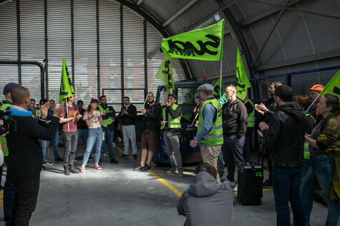 ACTION DES CHEMINOTS EN GRÈVE DEVANT LA TOUR EIFFEL