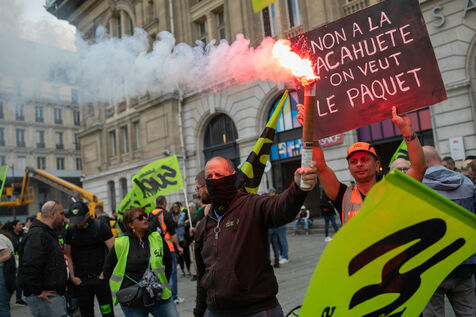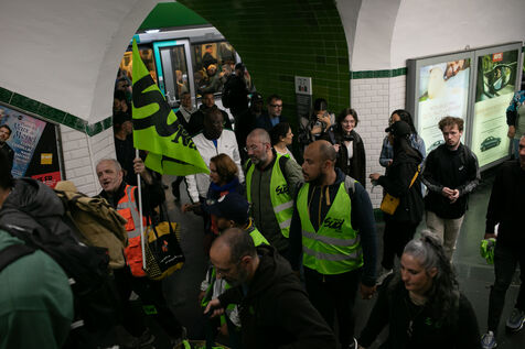 RAIL WORKERS ON STRIKE ACTION IN FRONT OF THE EIFFEL TOWER