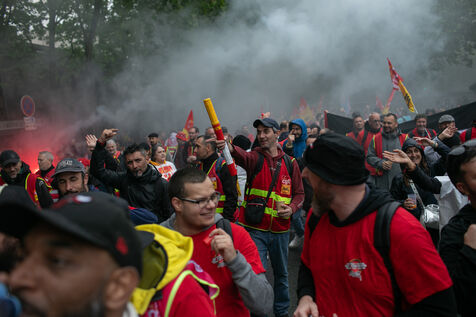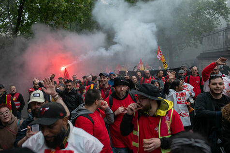 FRANCE, Paris May 28, 2024, Demonstration by railway workers against the liberalization of the railways and the liquidation of FRET, the public freight transport company. Photography by Victoria Valdivia Trigo / Hans Lucas.