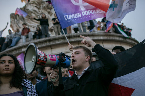 FRANCE, Paris, June 11, 2024, rally against the extreme right. Third day of demonstrations on the Place de la Républiques, called by youth organizations against the extreme right and in support of the union of the left in a new Popular Front.