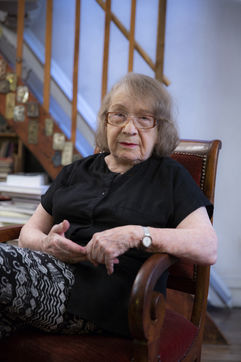 Portrait of photographer Sabine Weiss at her home in Paris.