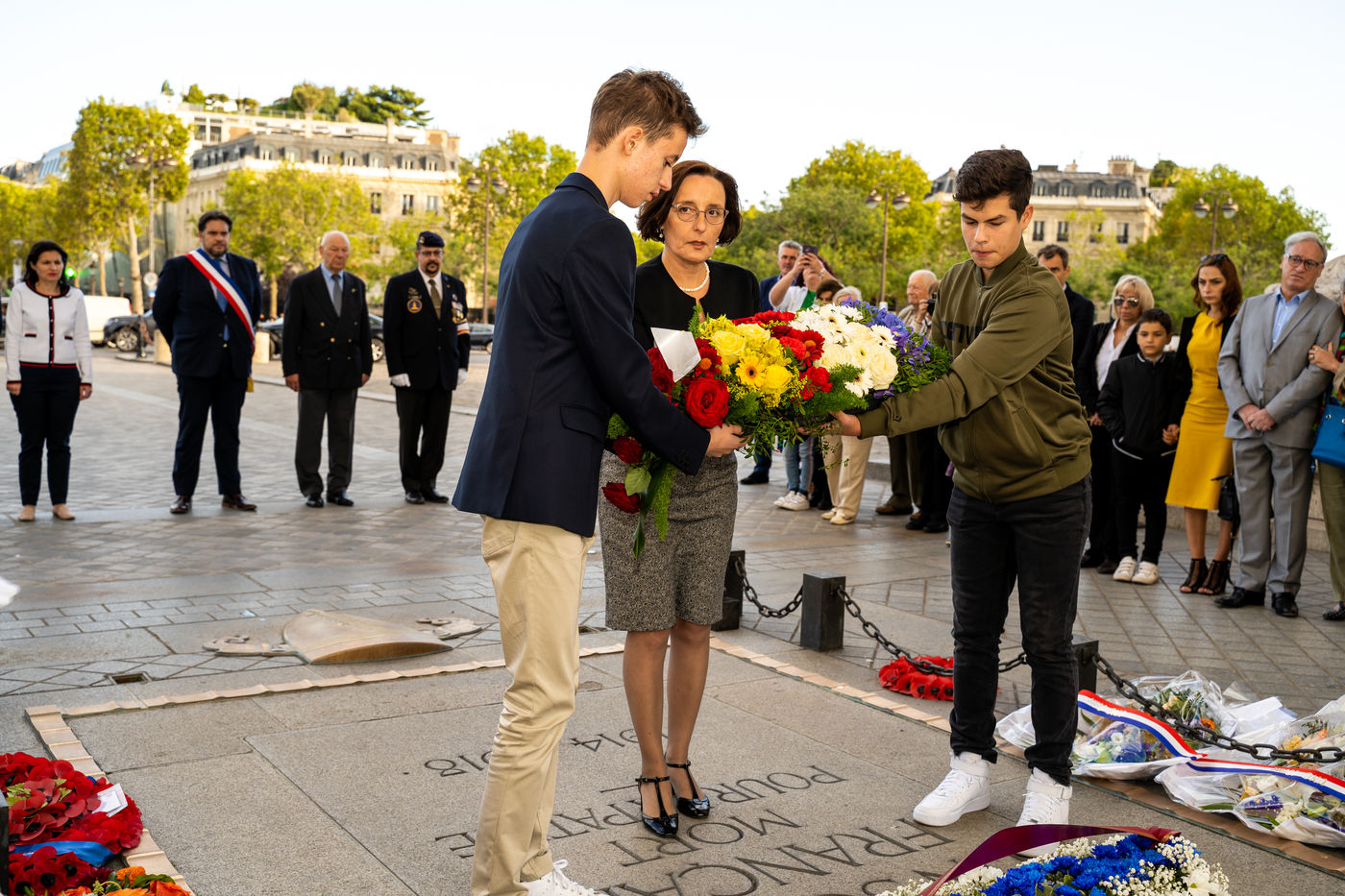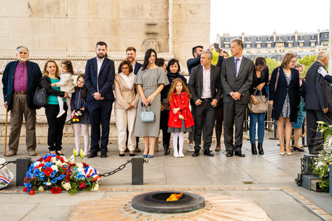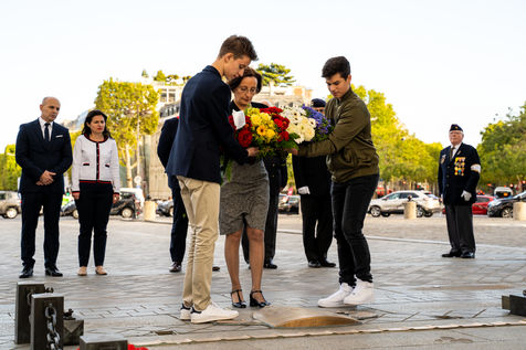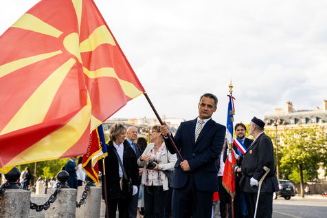 Ambassador Jadranka Chaushevska Dimov, revived by a symbolic gesture, the flame in front of the tomb of the Unknown Soldier under the Arc de Triomphe. This is the first time that the ceremony has taken place since the country's independence, on the occasion of the National Day of the Republic of Northern Macedonia, Paris 8 September 2019.
