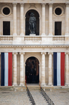 National popular tribute to honour the memory of President Jacques Chirac. On this occasion, President Jacques Chirac's coffin was installed at the entrance to Saint Louis des Invalides Cathedral and registers of condolences were placed at the public's disposal, Paris, 29 September 2019.