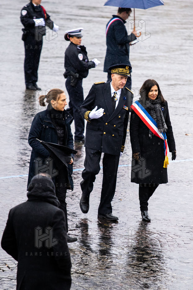 Le Président de la République, M. Emmanuel Macron, préside le lundi 11 novembre 2019 la cérémonie de commémoration du 101ème anniversaire de l'Armistice de 1918 à l'Arc de Triomphe. A cette occasion, il inaugure le premier monument national dédié aux Morts pour la France en opérations extérieures, au parc André Citroën dans le 15ème arrondissement de Paris.